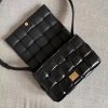 Daniel Lee brings a sense of modernity to Bottega Veneta by revamping the house’s iconic intrecciato technique – it’s been magnified and padded to create a 3D effect on this ‘Cassette’ bag. Made from glossed-leather, it has a structured silhouette that balances the inflated proportions perfectly. The adjustable shoulder strap is accented with a triangular buckle to match your gold jewelry.
