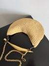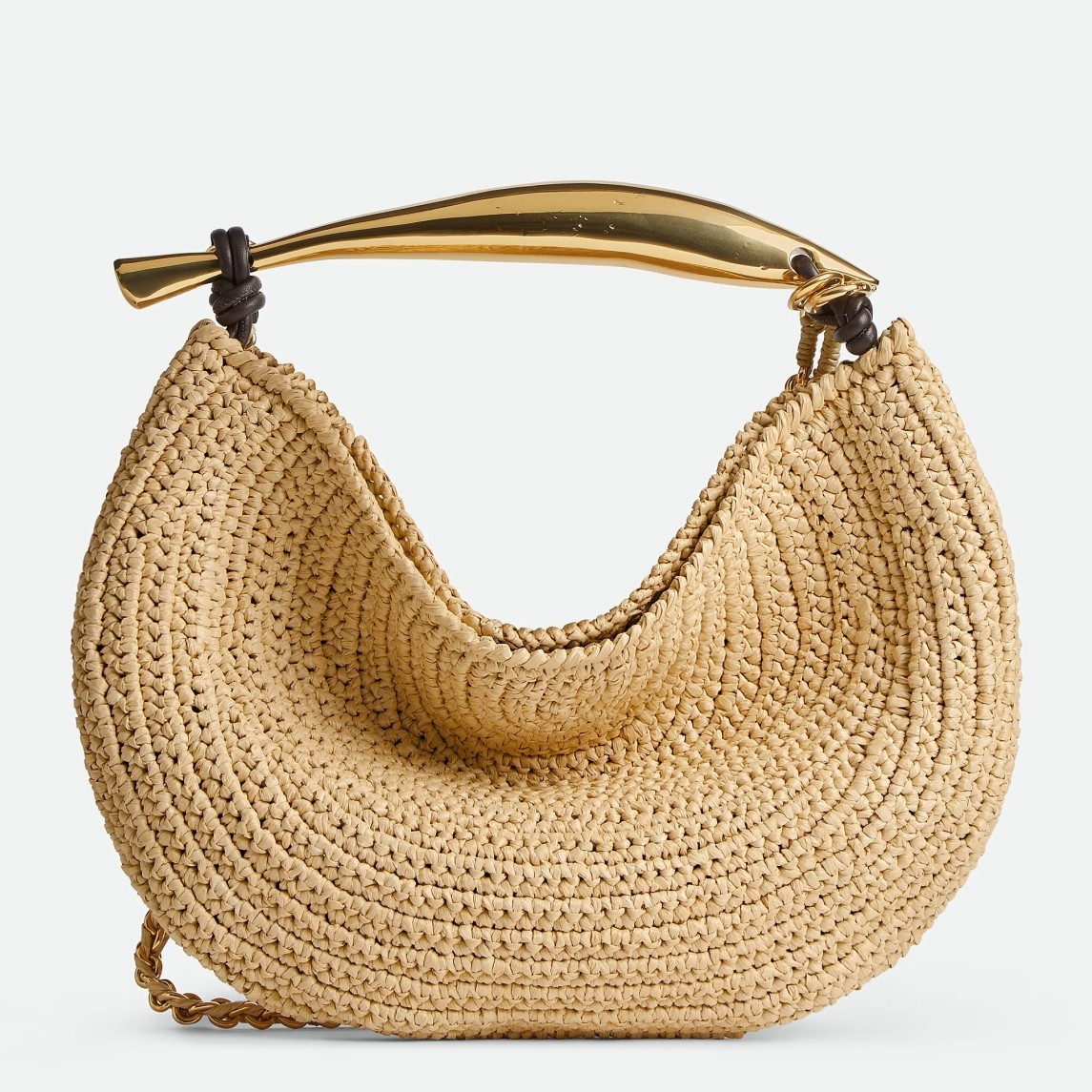 Bottega Veneta casts its net into the pool of top-handle bags. The result? The raffia Sardine, a meticulous feat of Italian craftsmanship that spotlights the label’s penchant for irregular shapes in its sculptural gold-tone handle. Look closely at the statement hardware and you’ll see slight nuances and engravings ?C each a unique marking that points to the artisans that crafted it.