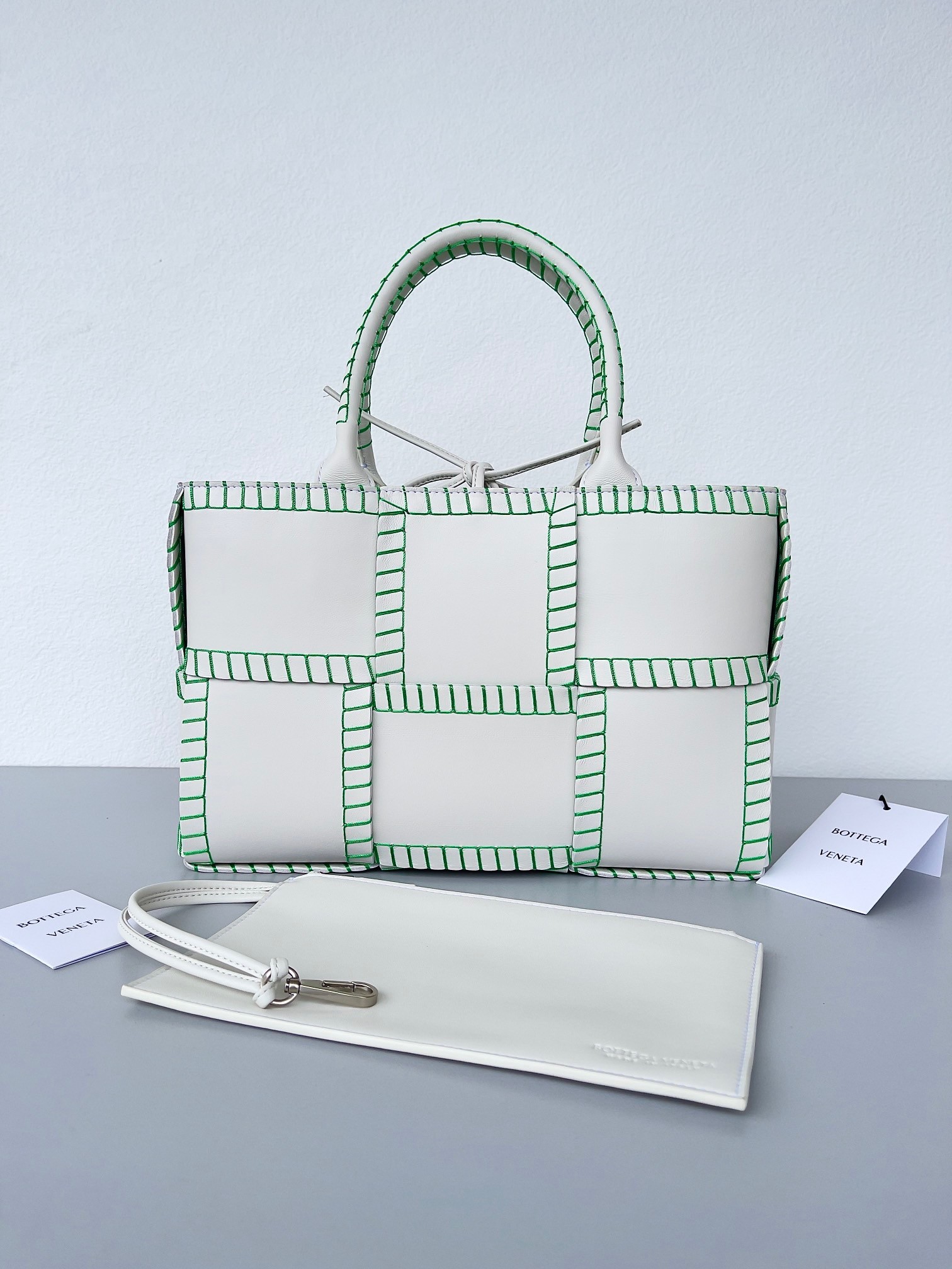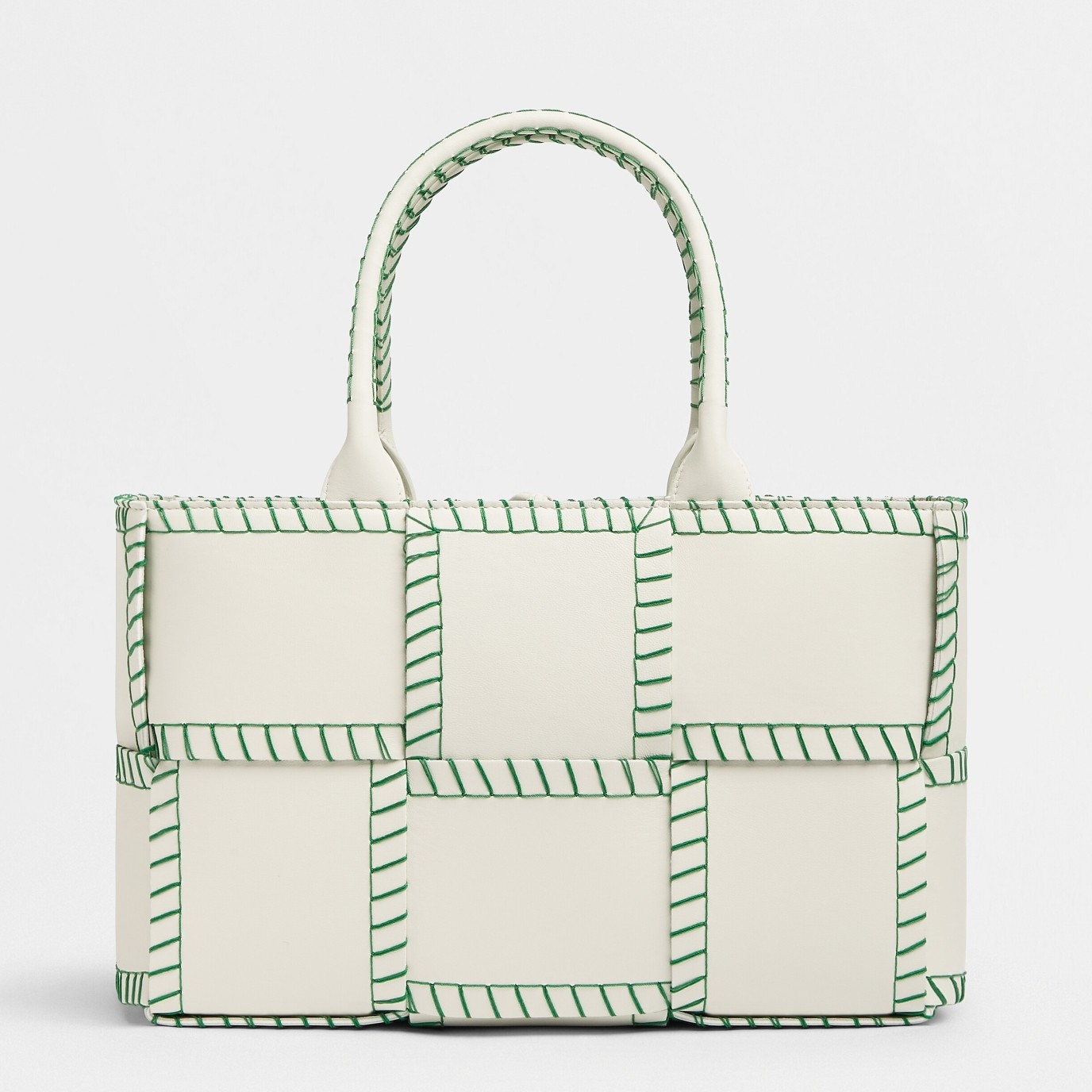 Bottega Veneta shrinks its ‘Arco’ tote down to small proportions, making it an ideal companion for days when you don’t have as much to carry. It’s been wove from thick strips of supple leather with overlock stitching using the label’s time-honored intrecciato technique.