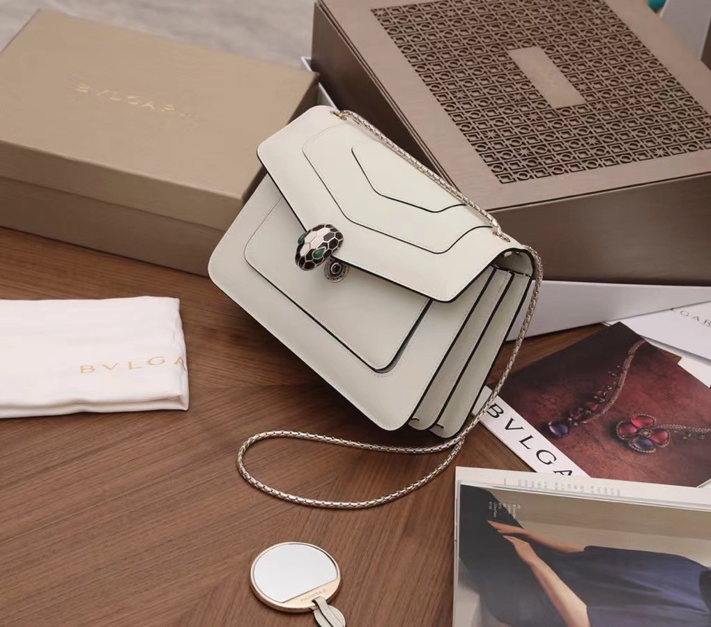Inspired by the history of humanity – Bvlgari’s Serenti Forever collection is encircled with legend, and this shoulder bag is destined to be at the forefront of your accessories collection. Rendered from supple leather, this design elegantly sings from the scale-effect chain strap, while the embellished snake promises a flash of brand recognition as you glide through the evening.