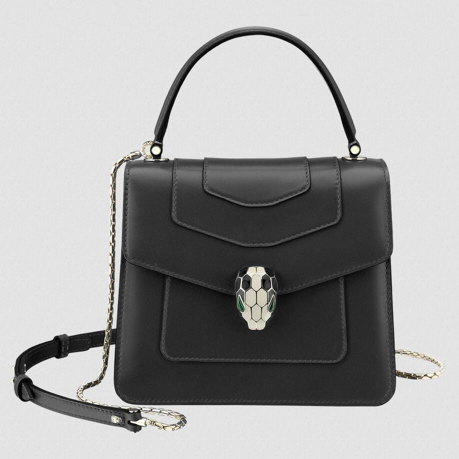 Encircled with legend, Bvlgari’s Serpenti Forever collection is inspired by the history of humanity, dating back to ancient Greek and Roman mythology. A symbol of wisdom and vitality, the seductive serpent sits proudly atop this cross body bag with hypnotic malachite eyes. Crafted from smooth leather, grab the single top handle to infuse your desk-to-dinner repertoire with retro glamour.