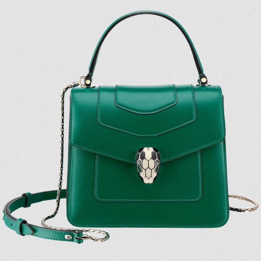 Encircled with legend, Bvlgari’s Serpenti Forever collection is inspired by the history of humanity, dating back to ancient Greek and Roman mythology. A symbol of wisdom and vitality, the seductive serpent sits proudly atop this cross body bag with hypnotic malachite eyes. Crafted from smooth leather, grab the single top handle to infuse your desk-to-dinner repertoire with retro glamour.