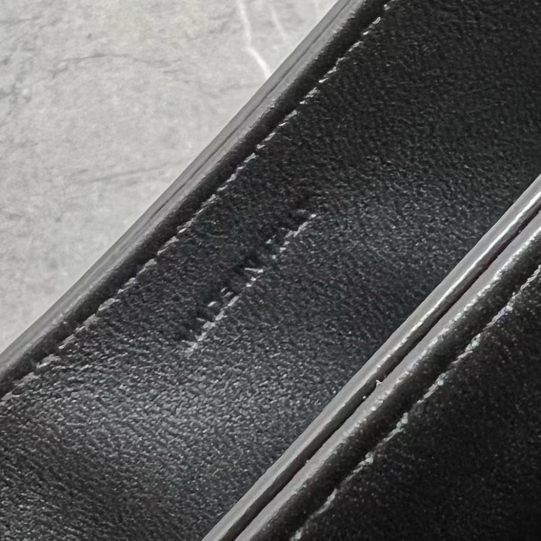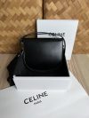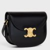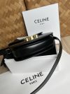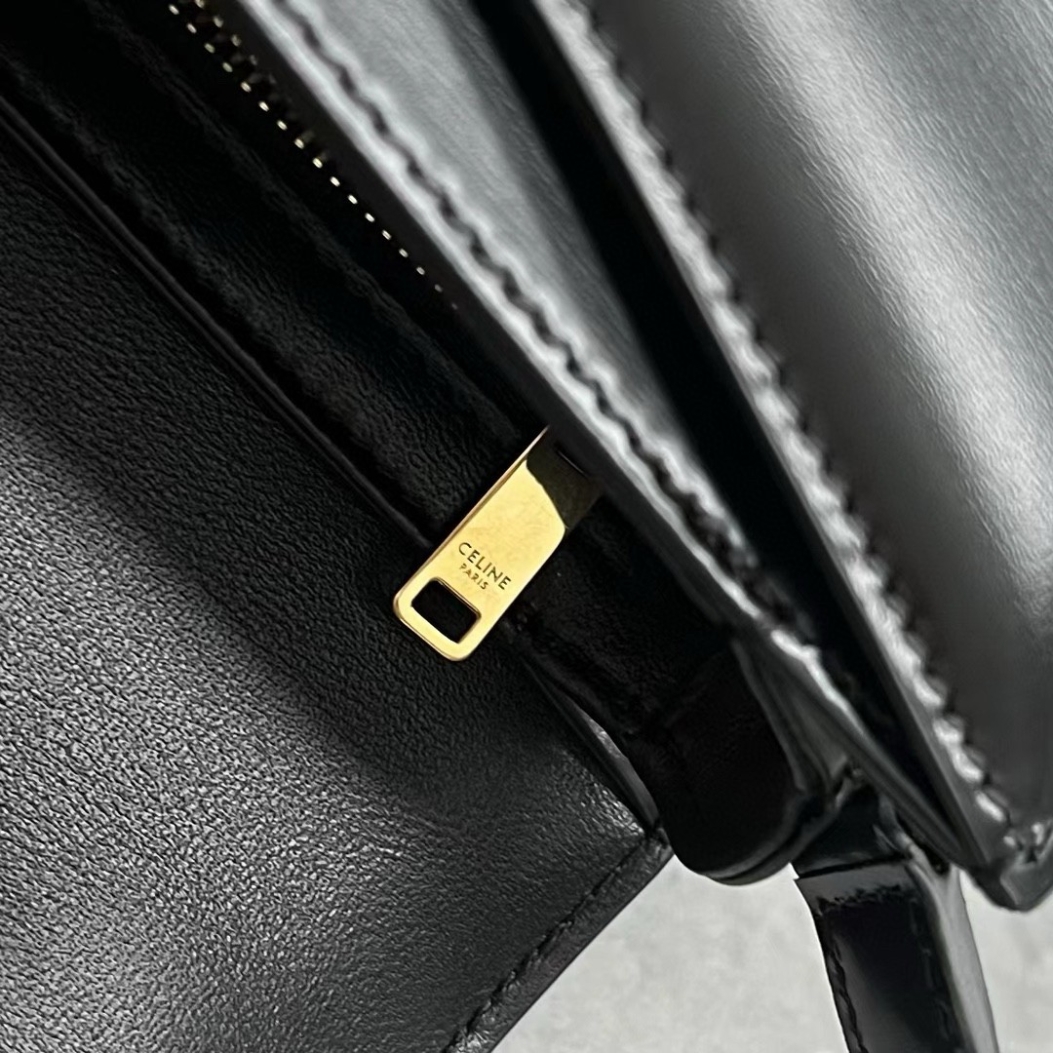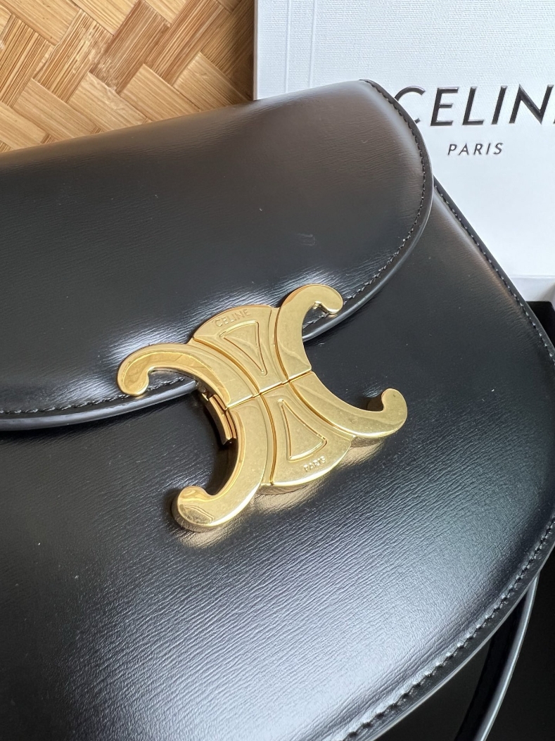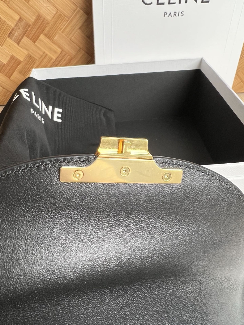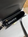 This chic shoulder bag is crafted of fine shiny calfskin leather. The bag features an adjustable leather strap with polished gold hardware and a matching gold press lock on the crossover flap. The flap opens to a front pocket and leather interior with a zipper pocket.