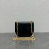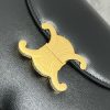 This chic shoulder bag is crafted of fine calfskin leather. The bag features a gold polished strap with a gold triomphe press lock on the crossover flap. The flap opens to a black interior with a zipper pocket.