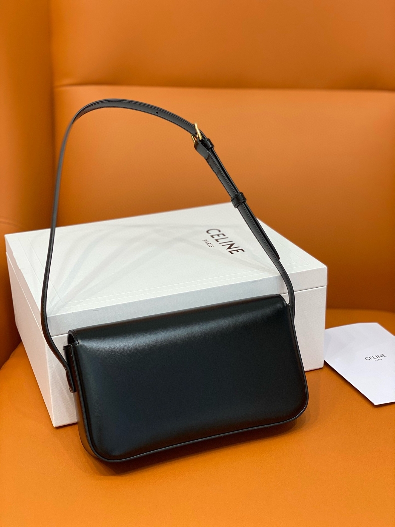 Celine Claude Shoulder bag is crafted from calfskin leather. It features an adjustable leather shoulder strap with luxurious gold hardware and a matching press lock on the crossover flap. Inside, you’ll discover a matching leather interior with a convenient patch pocket.