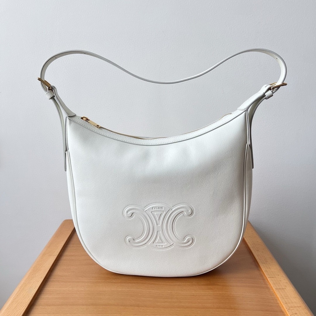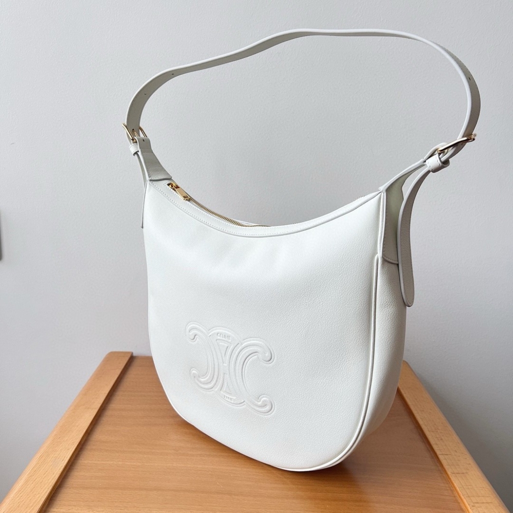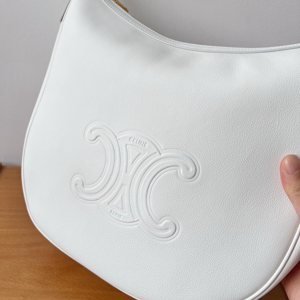 Celine Heloise Cuir Triomphe Bag in White Calfskin