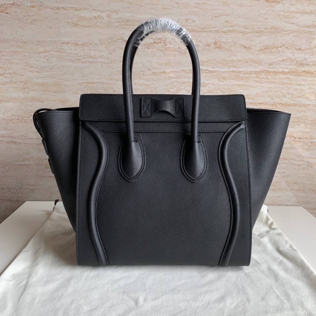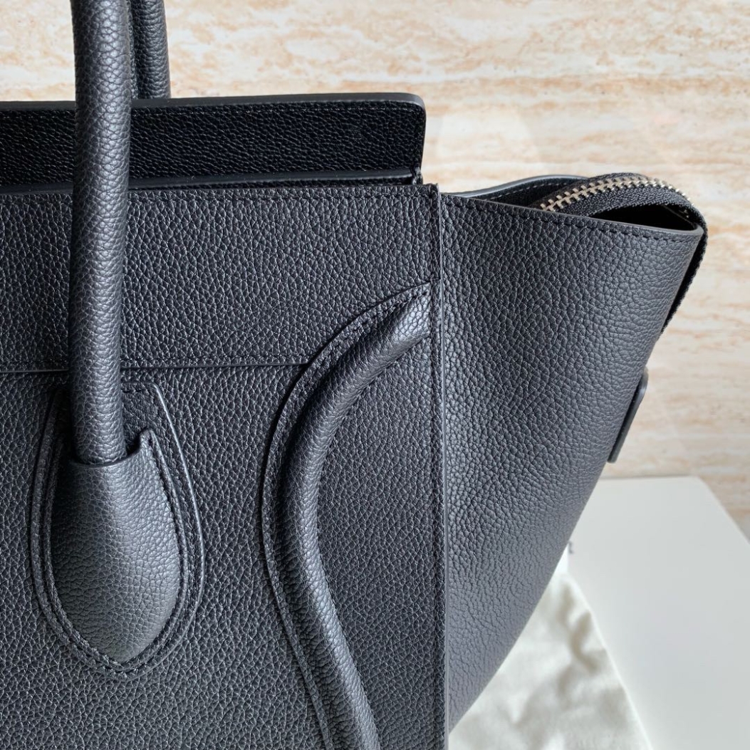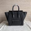The Celine Luggage Tote is, without a doubt, one of the most sought after handbag in the world. Featuring a casual yet luxurious style, It is simple and distinctive with its sturdy handles and detailed stitching. This Mini luggage tote features the signature top handles, front zipper with drummed calfskin outside and a suede interior.