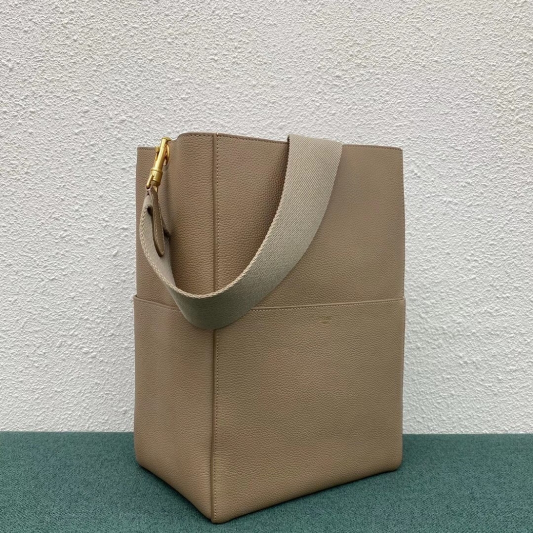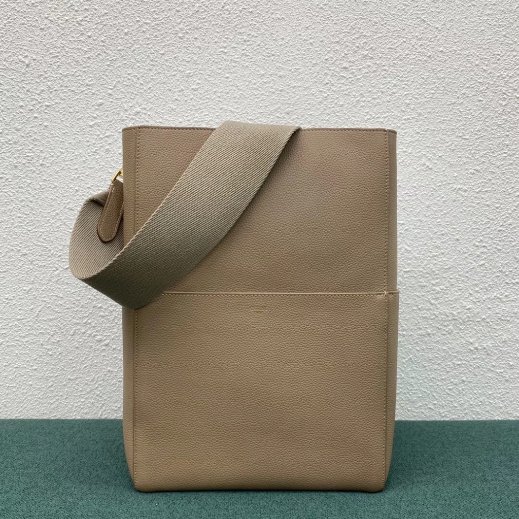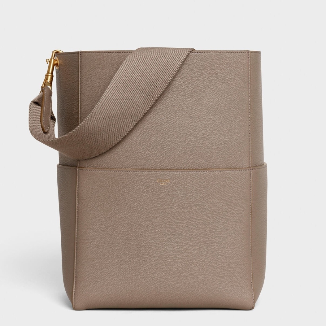 Celine Sangle Bucket Bag In Taupe Grained Calfskin