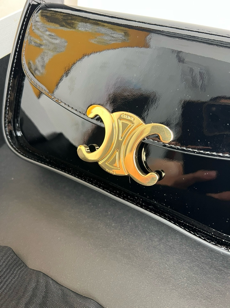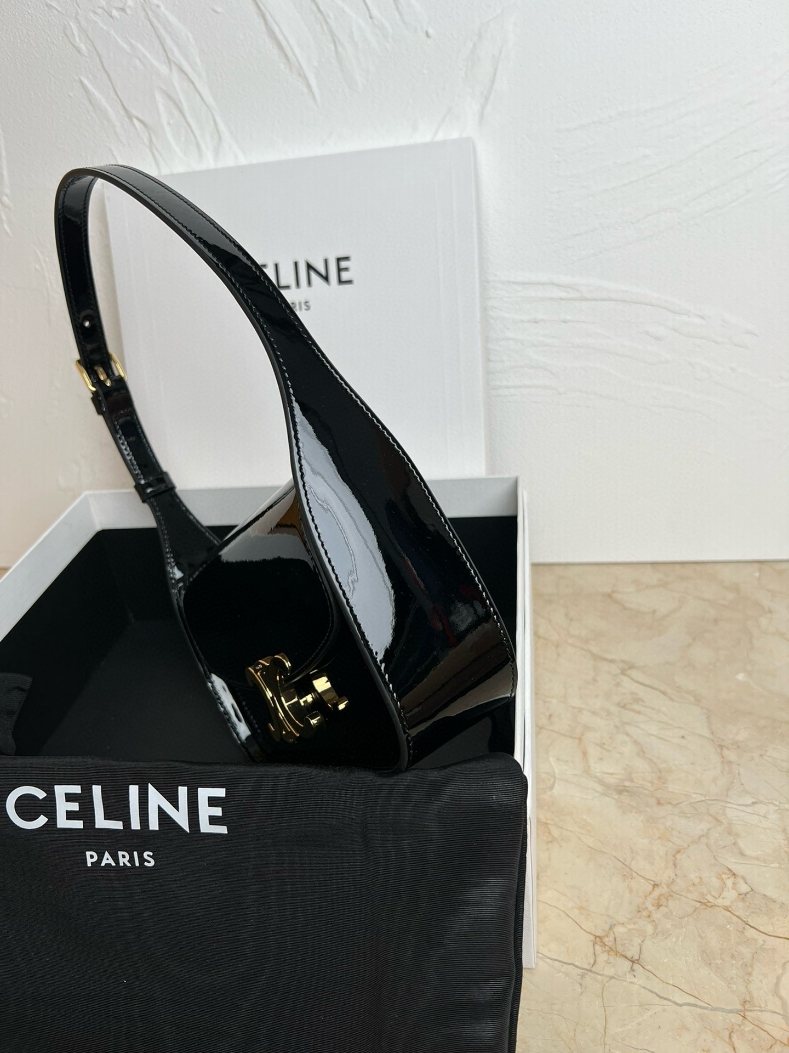 Y2K style isn’t going anywhere yet, and Celine’s Terence Shoulder Bag embodies this trend with a modern twist. Crafted from patent calfskin – the Winter 2024 collection’s signature material – the Terence showcases a sleek shoulder strap that extends directly from the bag’s body, creating a streamlined and contemporary look. Featuring an east-west silhouette, the Terence exudes effortless cool-girl vibes. It is secured with a Triomphe snap button closure and includes a main compartment along with an inner flat pocket for added convenience.