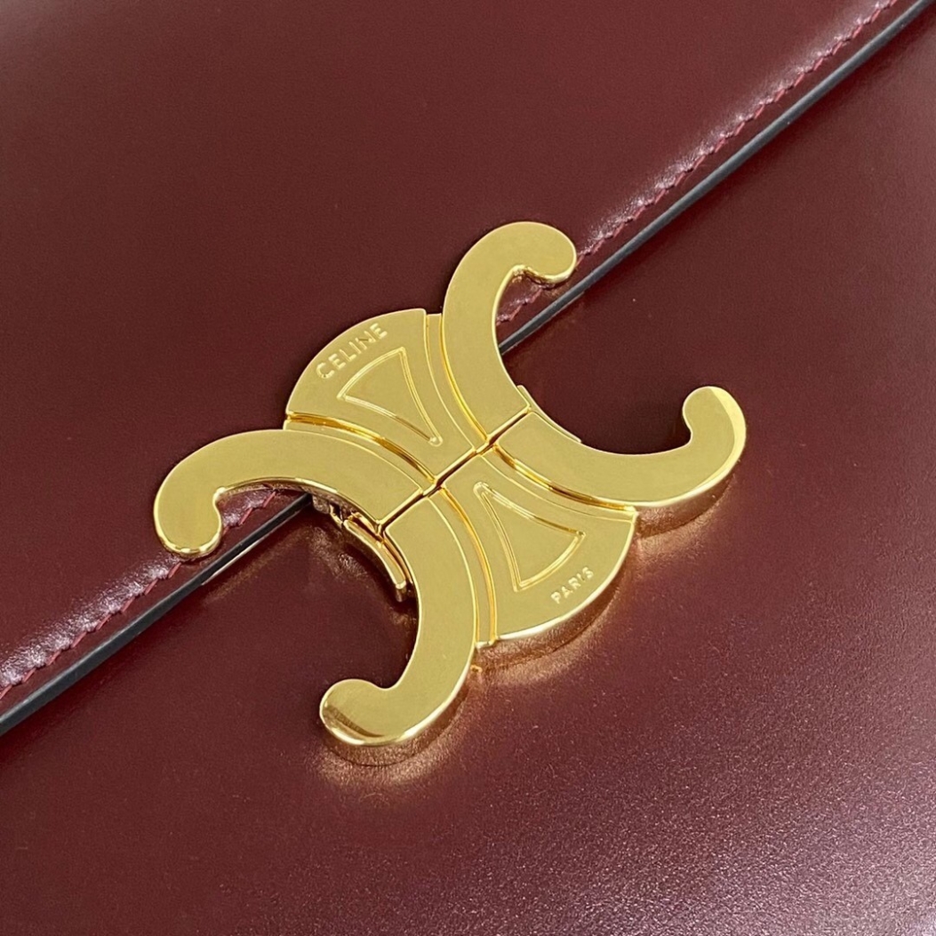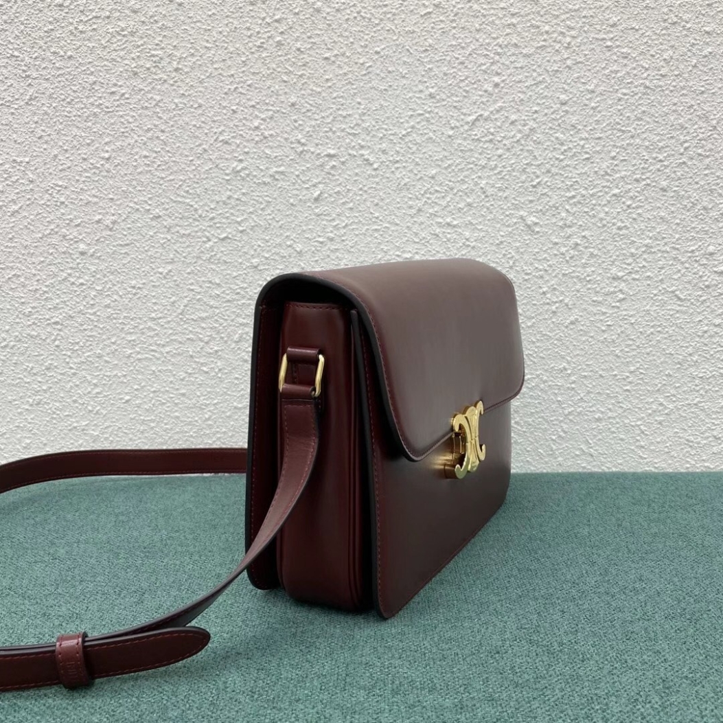 Celine Triomphe Large Bag In Bordeaux Calfskin