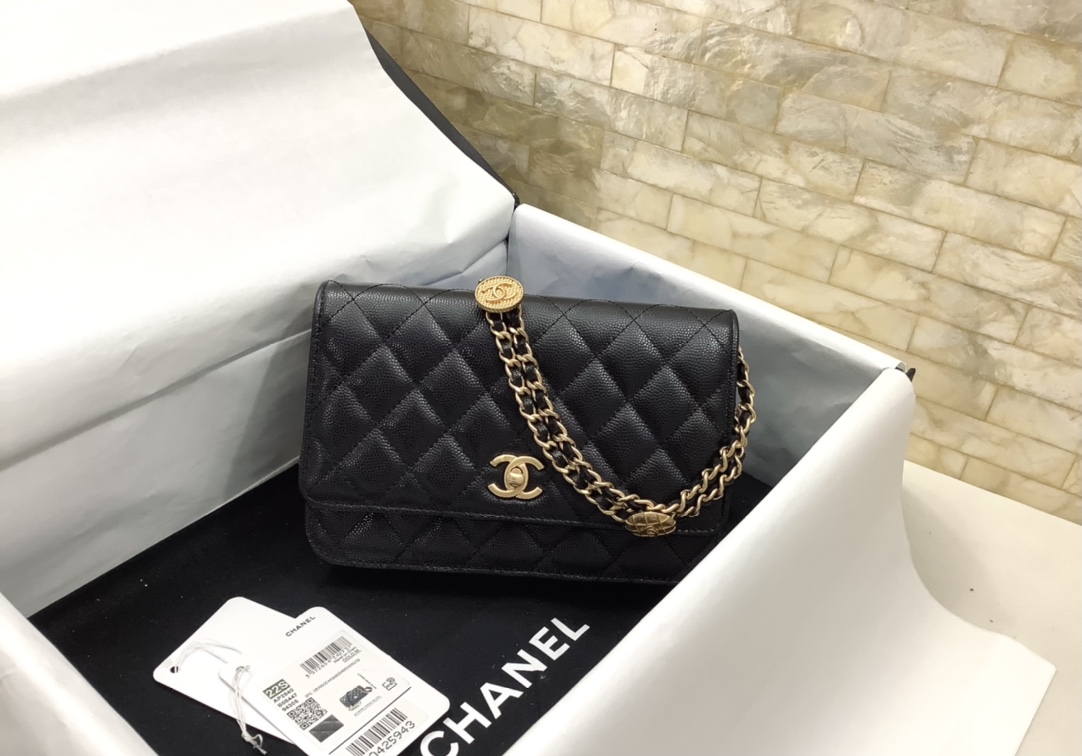 Gender:WomenChanel 22A Twist Your Buttons Wallet on Chain WOC in Black Caviar