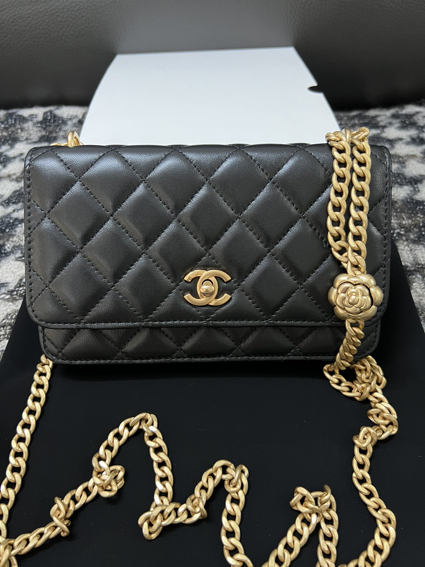 Chanel 23S Woc Wallet On Chain Black With Adjustable Camellia Buckle