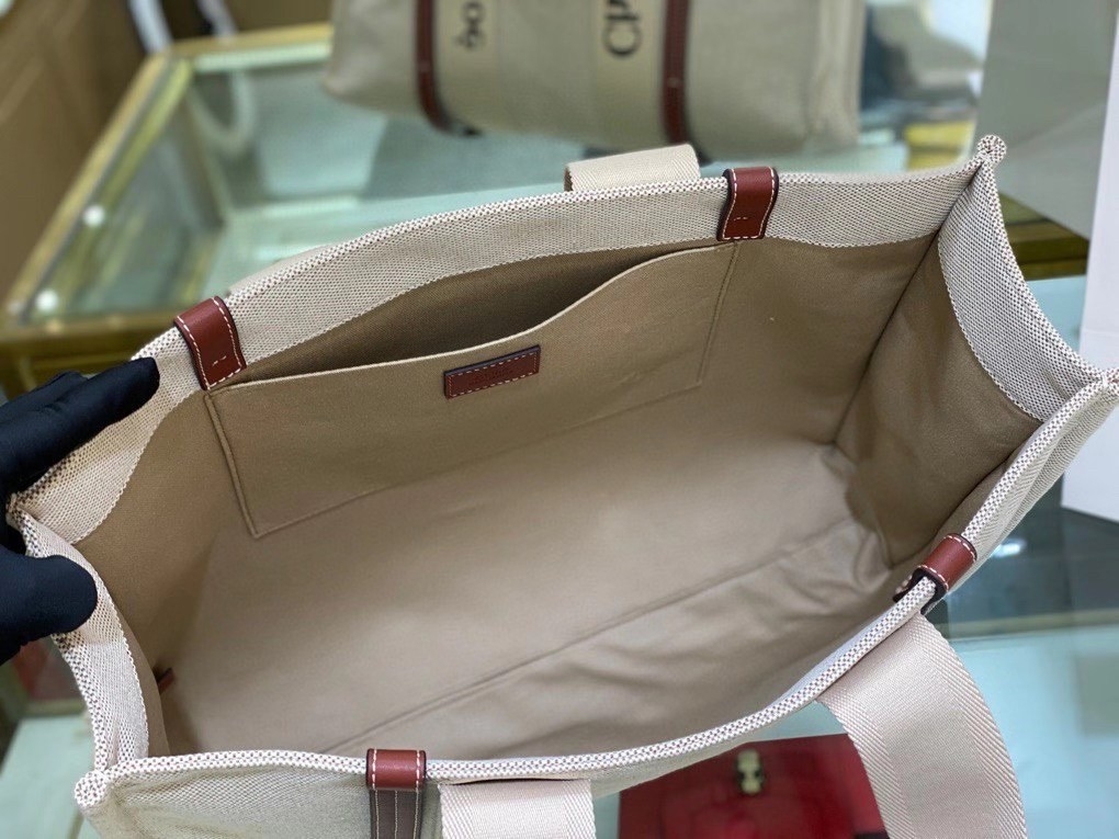 Swing Chloé’s Woody Large tote over one shoulder for easy Parisian elegance. Made from cotton canvas to a structured boxy shape, it’s supported with supple calfskin leather and logo-adorned trims for optimum carryall ability. We’re sure it’ll induce compliments at your next picnic gathering.
