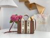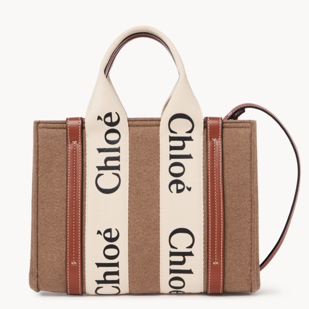 Chloé extends its line of Woody accessories with this small-sized tote. It’s made from partially recycled felt – derived from plastic waste – with calfskin leather trims, and unmissable logo-printed straps that extend along the lateral sides for optimum support.