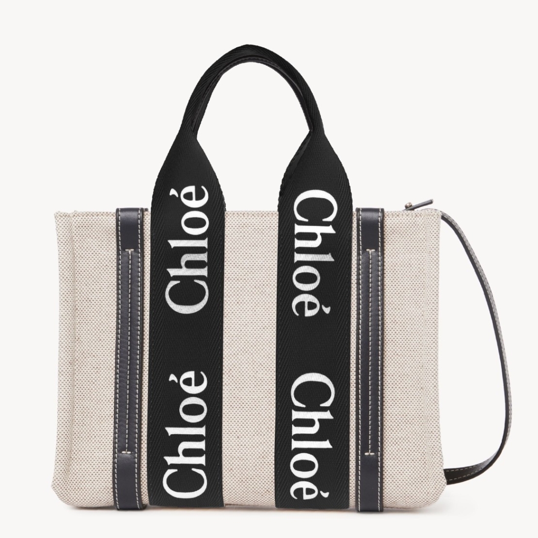 The logo-detail ribbon that characterises Chloé’s Woody range is an icon in its own right, bestowed here upon the tote bag of the same name. Woven from canvas, the accessory adheres to the same covetable status as the matching sandals, with sharp, modern lines emphasised by smooth leather trims.