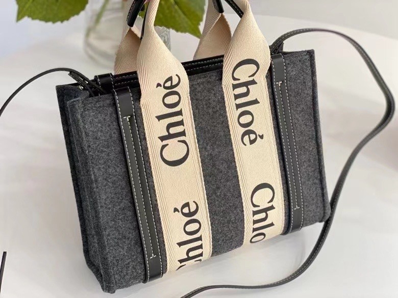 Chloé extends its line of Woody accessories with this small-sized tote. It’s made from partially recycled felt – derived from plastic waste – with calfskin leather trims, and unmissable logo-printed straps that extend along the lateral sides for optimum support.