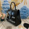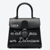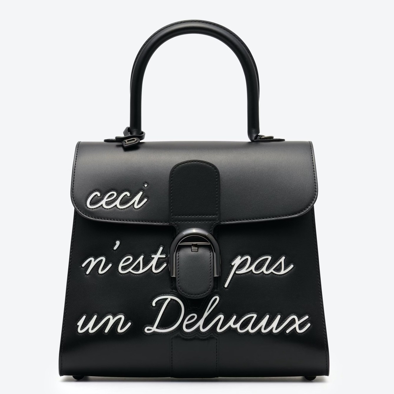 Born as part of La Maison*s renowned Magritte collection, L*Humour MM offers an appropriately surrealist spin on the recognisable Brillant silhouette. The unique design features the words &Ceci n*est pas un Delvaux* in elegant white script on the bag*s silk Box Calf exterior〞a subtle ode to Belgian painter Ren谷 Magritte. Finished with black metal hardware, L*Humour MM features a removable and adjustable shoulder strap for multiple styling options.