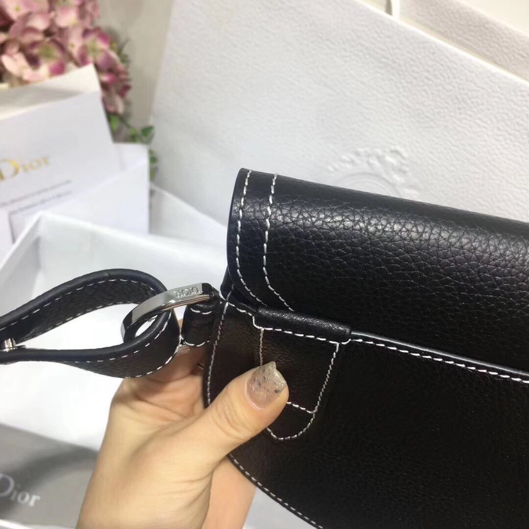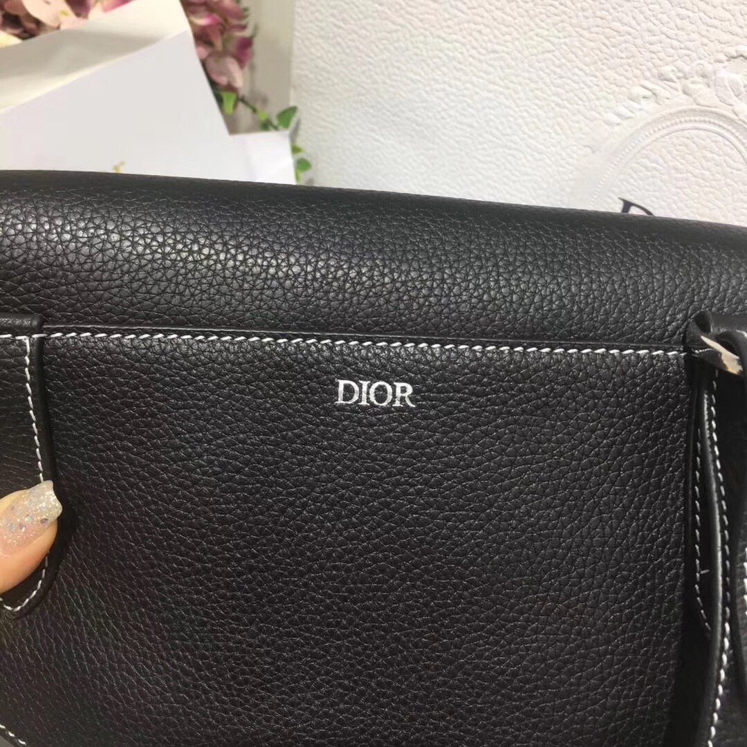 – Removable and adjustable shoulder strap in black grained calfskin and black Christian Dior jacquard