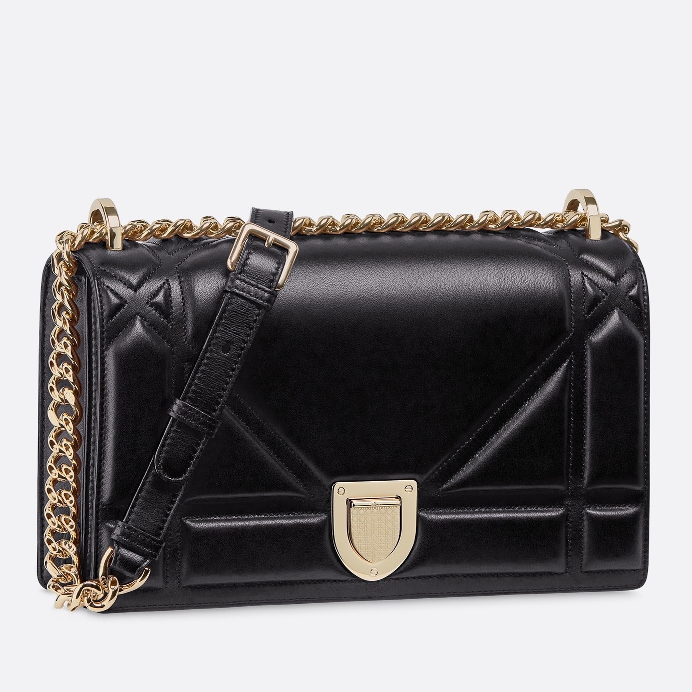 The original Diorama Bag is built with outward lined Cannage Motif, but the latest Diorama Bag is designed with inward lined Cannage Motif. The inward lined Cannage Motif has bigger lines due to the deepness. And the stitches are more vivid. Also, the new Cannage Motif creates a highlight effect, which makes it more shiny when looking from distance.