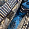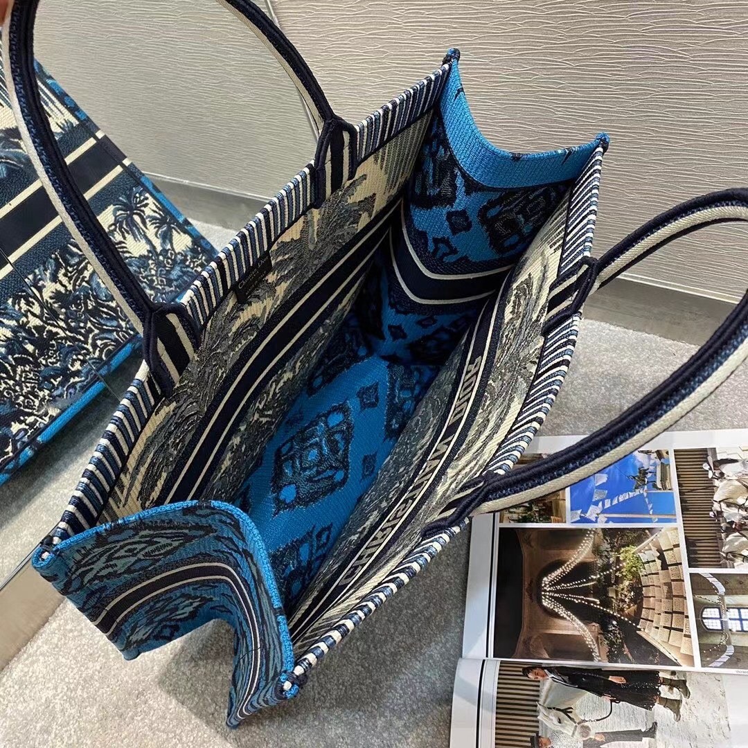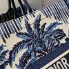 The Dior Book Tote, an original style introduced by Creative Director Maria Grazia Chiuri, has become a staple of the Dior aesthetic. Designed to carry all the daily essentials, the silhouette offers a new take on the hallmark Toile de Jouy with a fully embroidered variation with the blue Dior Palms motif. The front boasts a ‘Christian Dior’ signature while a graphic motif adorns the sides for a contrasting modern touch. The carryall is a prime example of Dior savoir-faire.