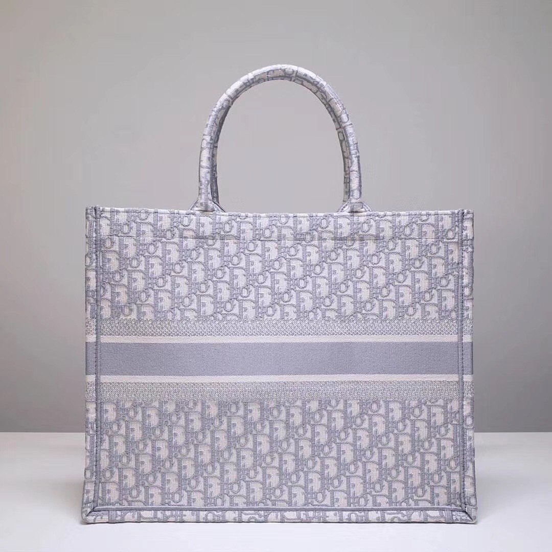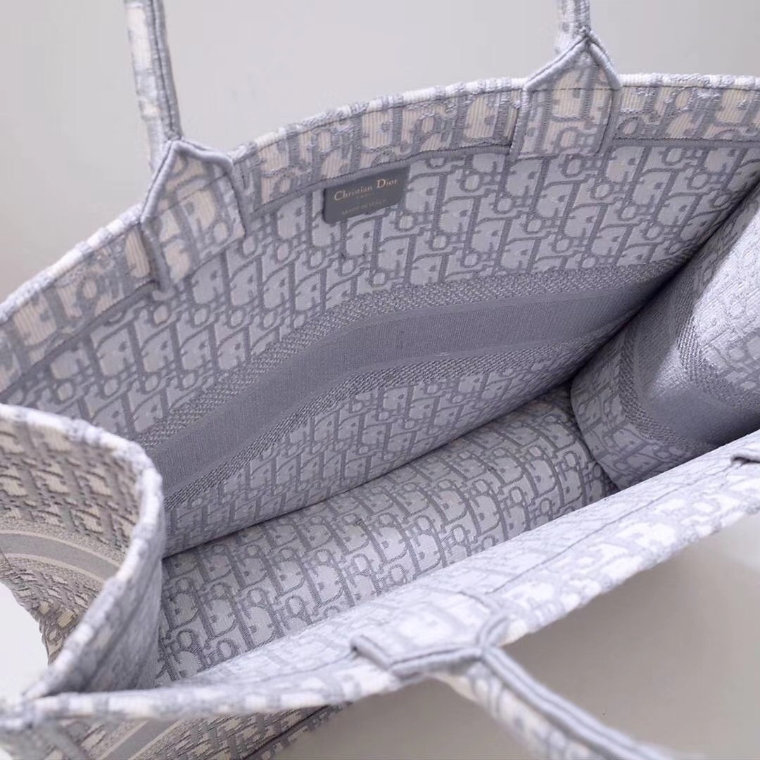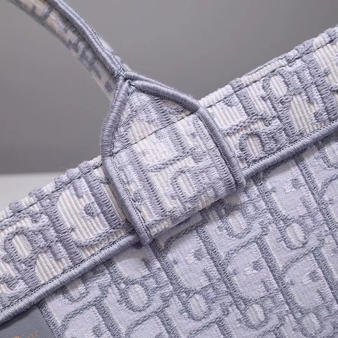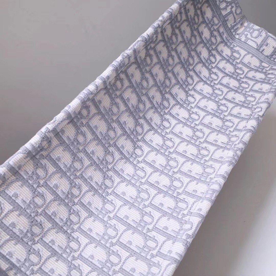 The Dior Book Tote, an original style introduced by Creative Director Maria Grazia Chiuri, has become a staple of the Dior aesthetic. Ideally designed to carry all your daily essentials, the large shape is fully embroidered with a gray Dior Oblique pattern and the ‘Christian Dior’ signature on the front. This carryall is a perfect example of the Dior savoir-faire and it may be worn with other small accessories or the Mitzah scarf for a complete look.