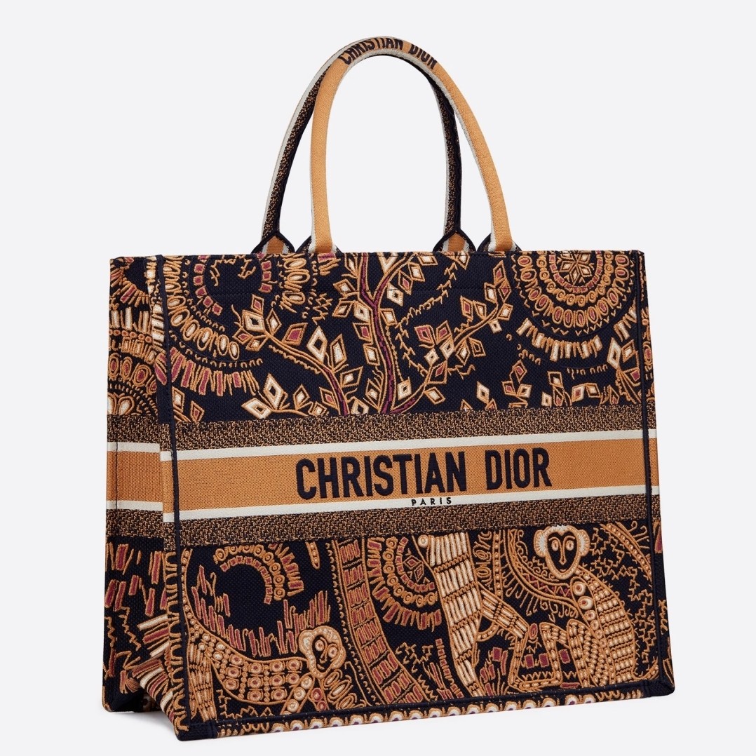 The Dior Book Tote is an original style introduced by Dior’s creative director, Maria Grazia Chiuri that has become a staple of the Maison’s aesthetic. Ideally designed to carry all your daily essentials, the large style is made of fully embroidered canvas and portrays this season’s monkey Dior Animals pattern with the “Christian Dior” signature on the front. This carryall is a perfect example of the Dior savoir-faire and it may be paired with other small accessories or the Mitzah scarf for a complete look.