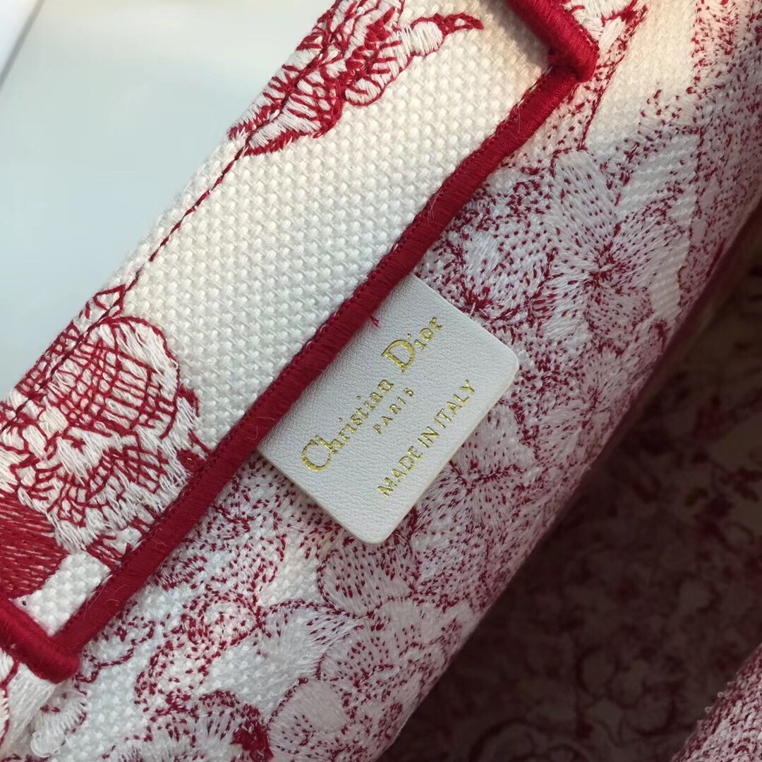 This Dior Tote bag has been made of white and black canvas embroidered with a hydrangea flowers motif. The tote can be carried by hand or on the shoulder.