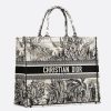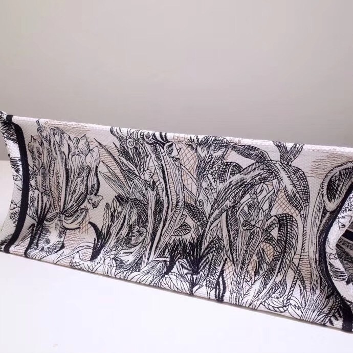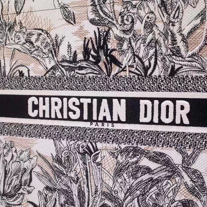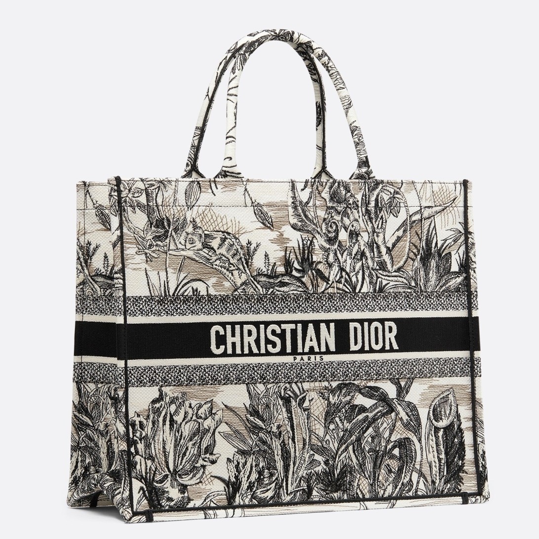 The French fashion house breaks down the creation of its newly designed Book Tote in canvas embroidered with a black and white Toile de Jouy Carnivora motif for Fall Winter 2019 bag collection. Deriving from as early as 1947, the French textile reimagined on the bag first was seen on the walls of the couturier’s first boutique, ??Colifichets.??