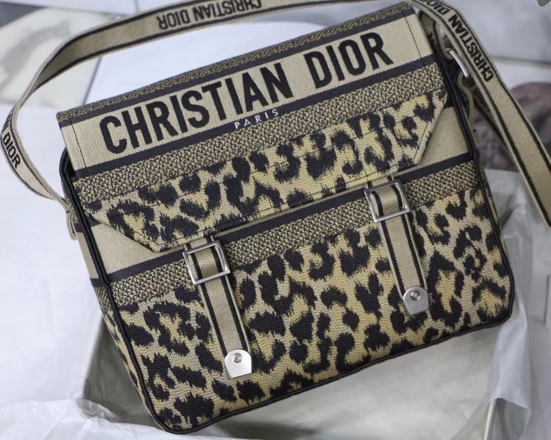 The Diorcamp bag is Maria Grazia Chiuri’s update to the classic messenger bag, with signature Dior elements for a relaxed yet contemporary look. The bag is fully embroidered with a beige multicolor Mizza motif, inspired by the leopard pattern from the House archives and features the ‘CHRISTIAN DIOR’ signature on the front. Its spacious form and comfortable over-the-shoulder or crossbody wear make it an ideal daily companion.