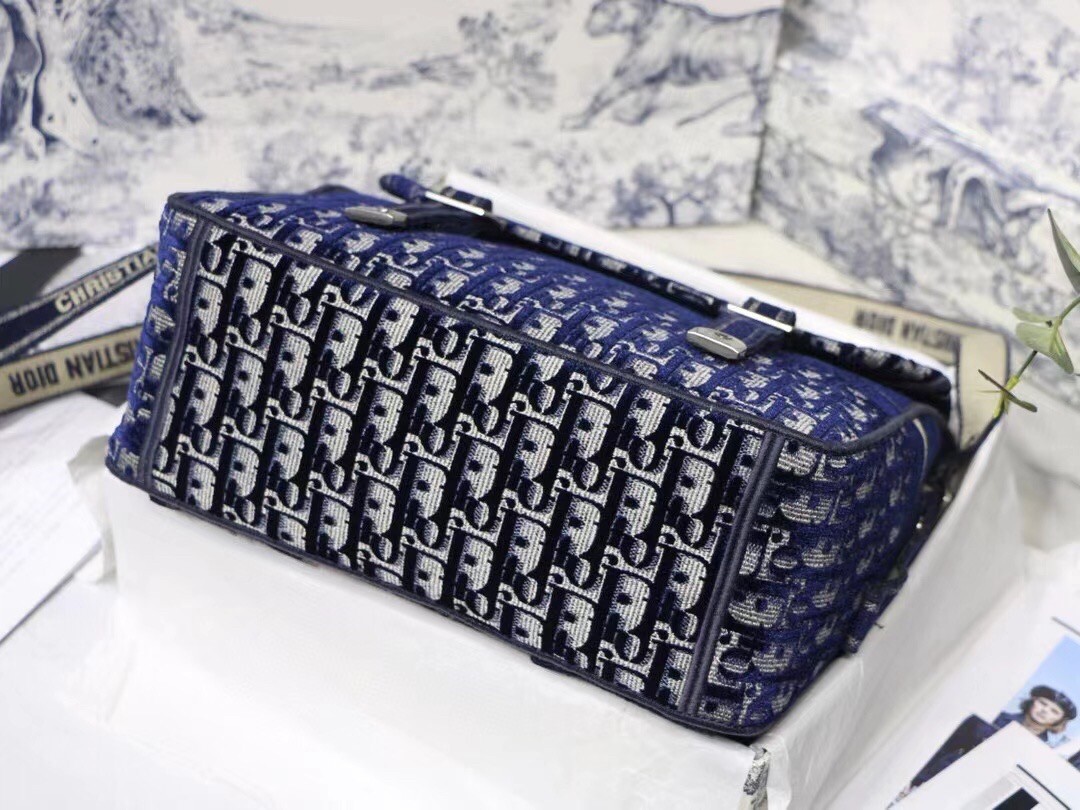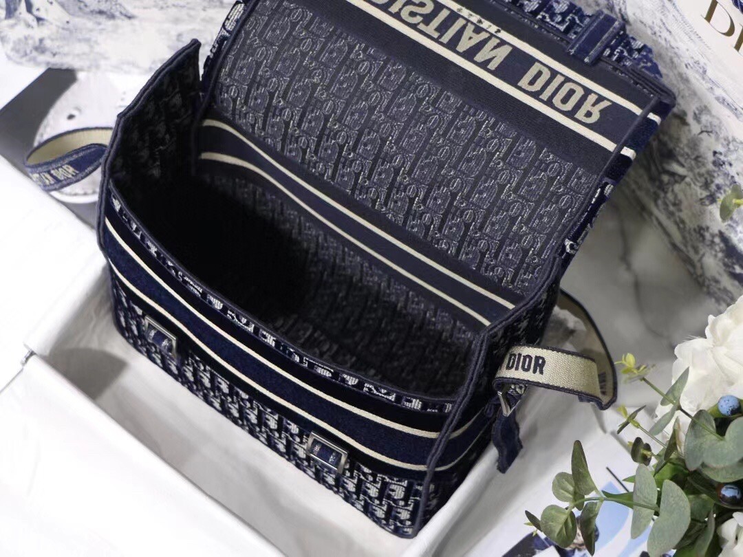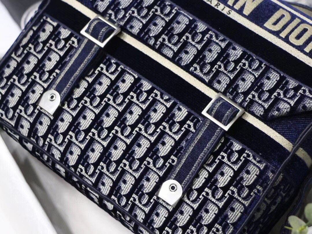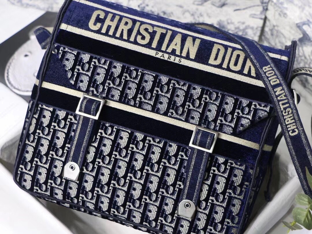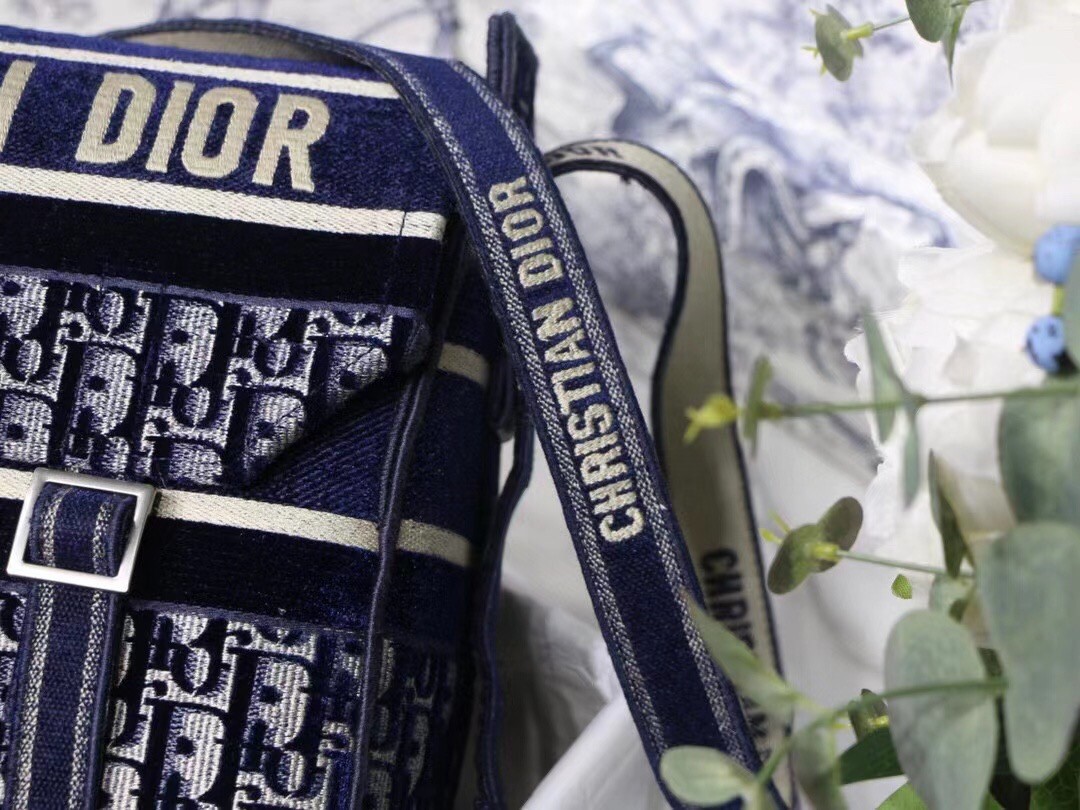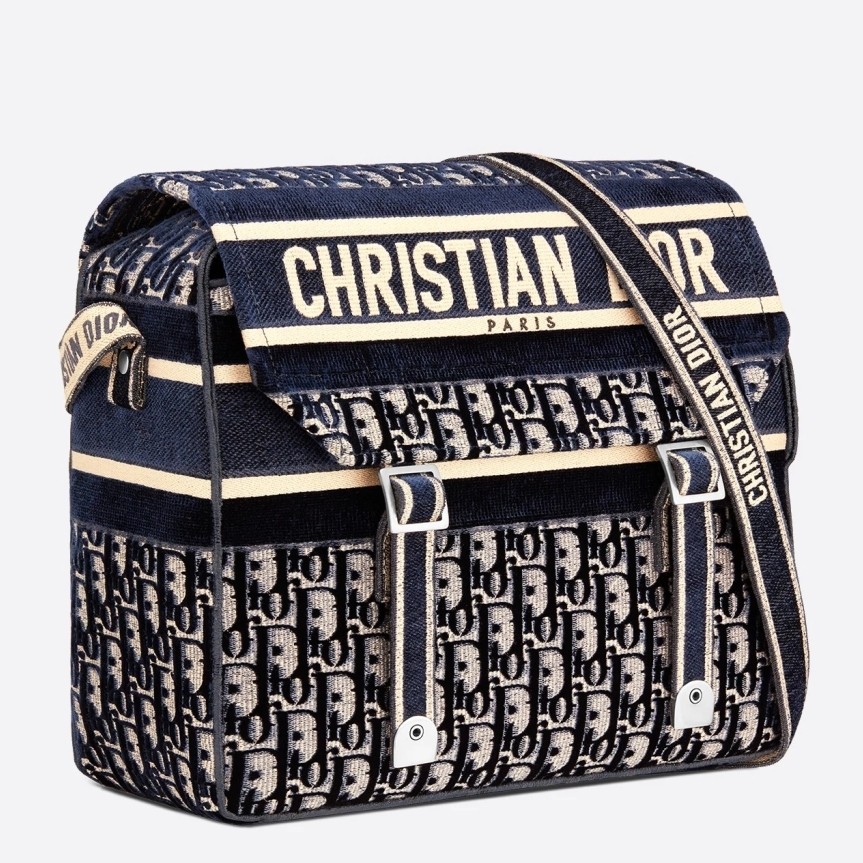 The Diorcamp bag is Maria Grazia Chiuri’s update to the classic messenger bag, incorporating signature Dior elements for a relaxed yet contemporary look. The bag is crafted in blue velvet that is entirely embroidered with the Dior Oblique motif, and features the iconic ‘Christian Dior’ signature across the front flap. Its spacious form and ease of wear make it an effortless daily companion.