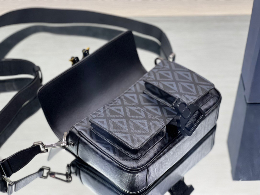 Dior Hit the Road Messenger Bag In Black CD Diamond Canvas