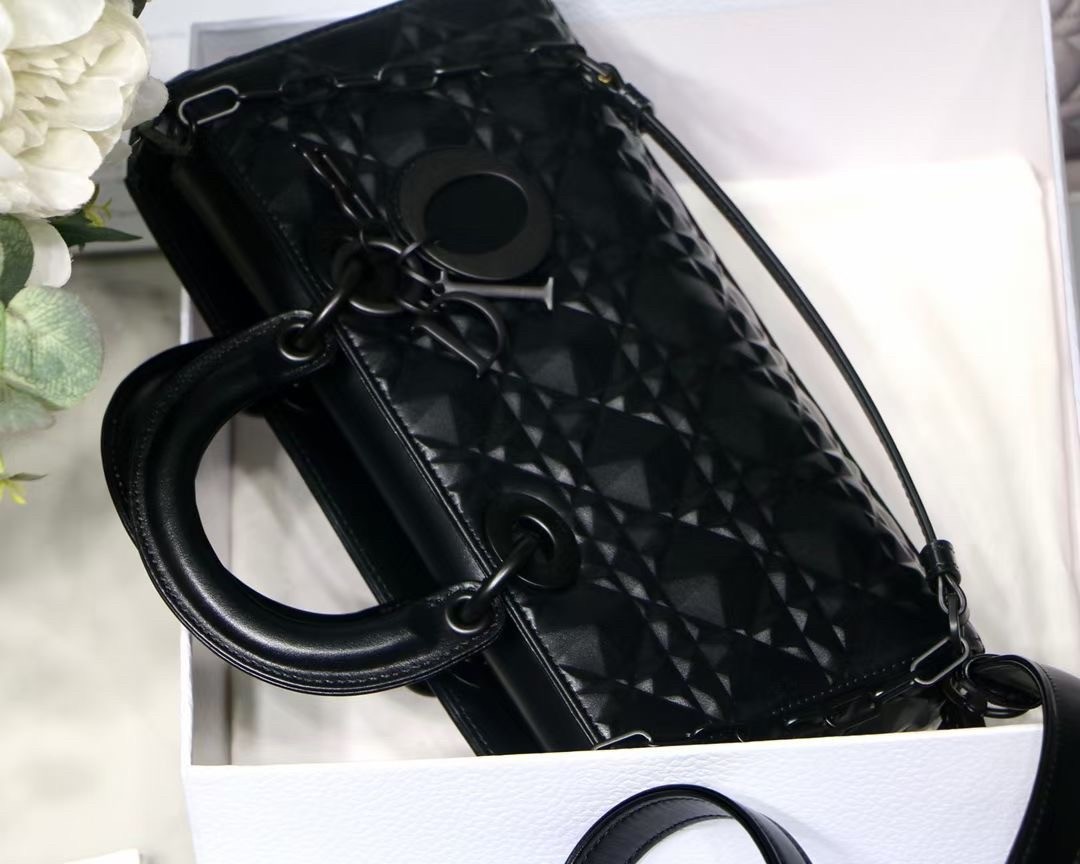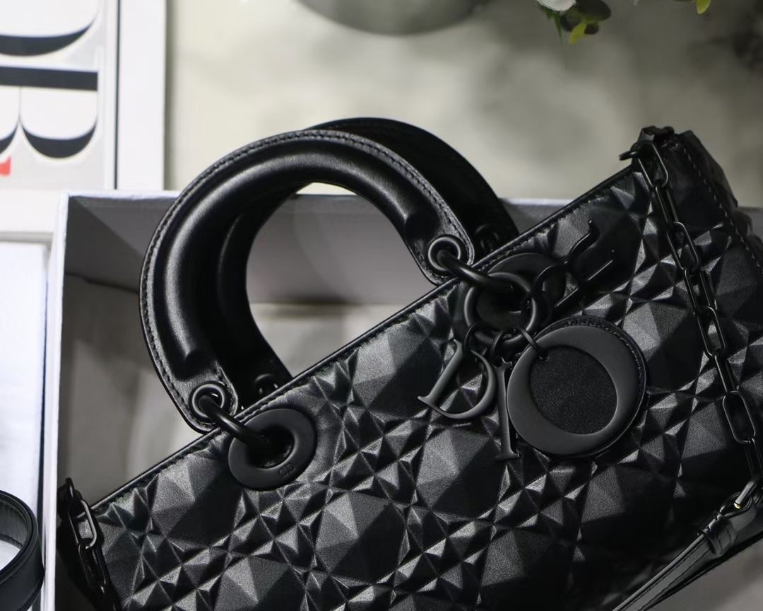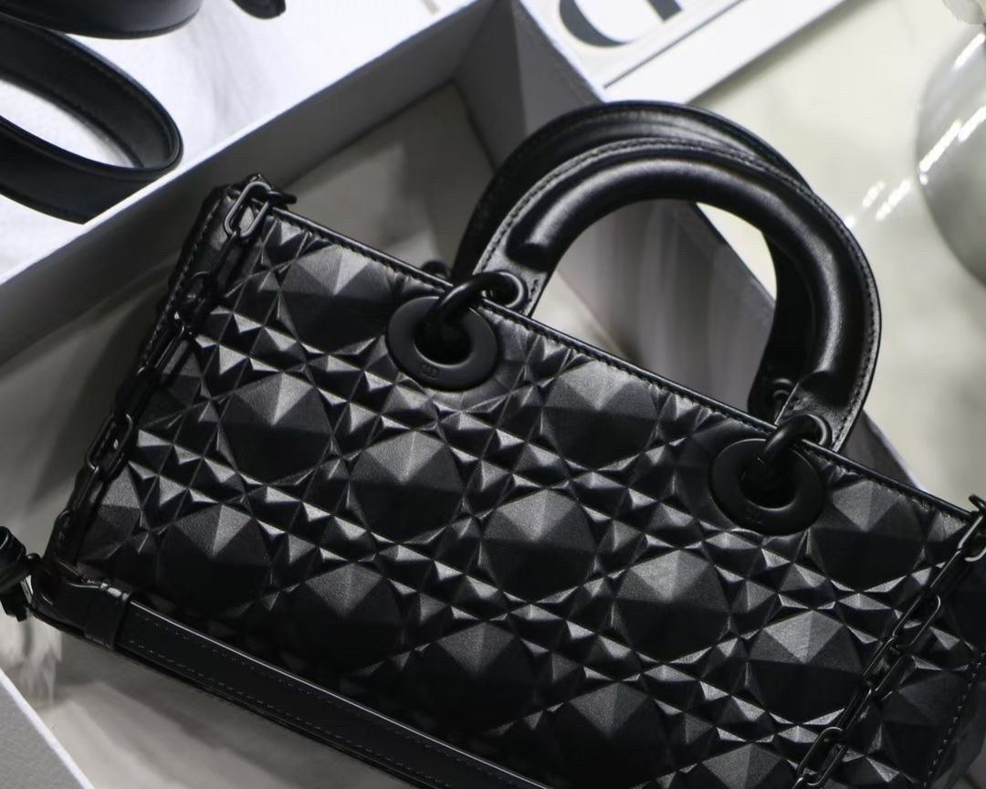 The Lady D-Joy bag captures the House’s vision of elegance and beauty by showcasing the iconic streamlined aesthetic of the Lady Dior line. Crafted in Cannage calfskin featuring a Diamond motif, the refined and timeless style is enhanced by tonal matte metal ‘D.I.O.R.’ charms elegantly embellishing its silhouette. Featuring one removable chain shoulder strap and another adjustable and removable leather shoulder strap, the Lady D-Joy bag can be carried by hand, worn over the shoulder or crossbody as a daily companion.