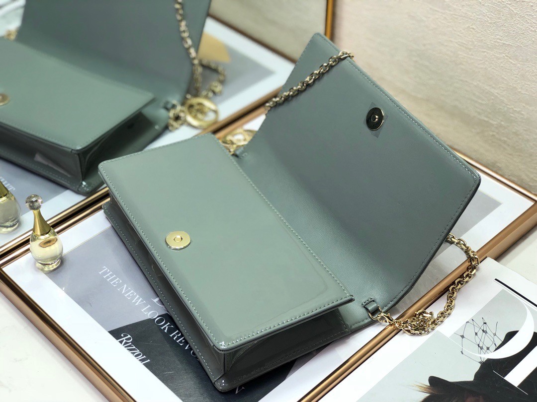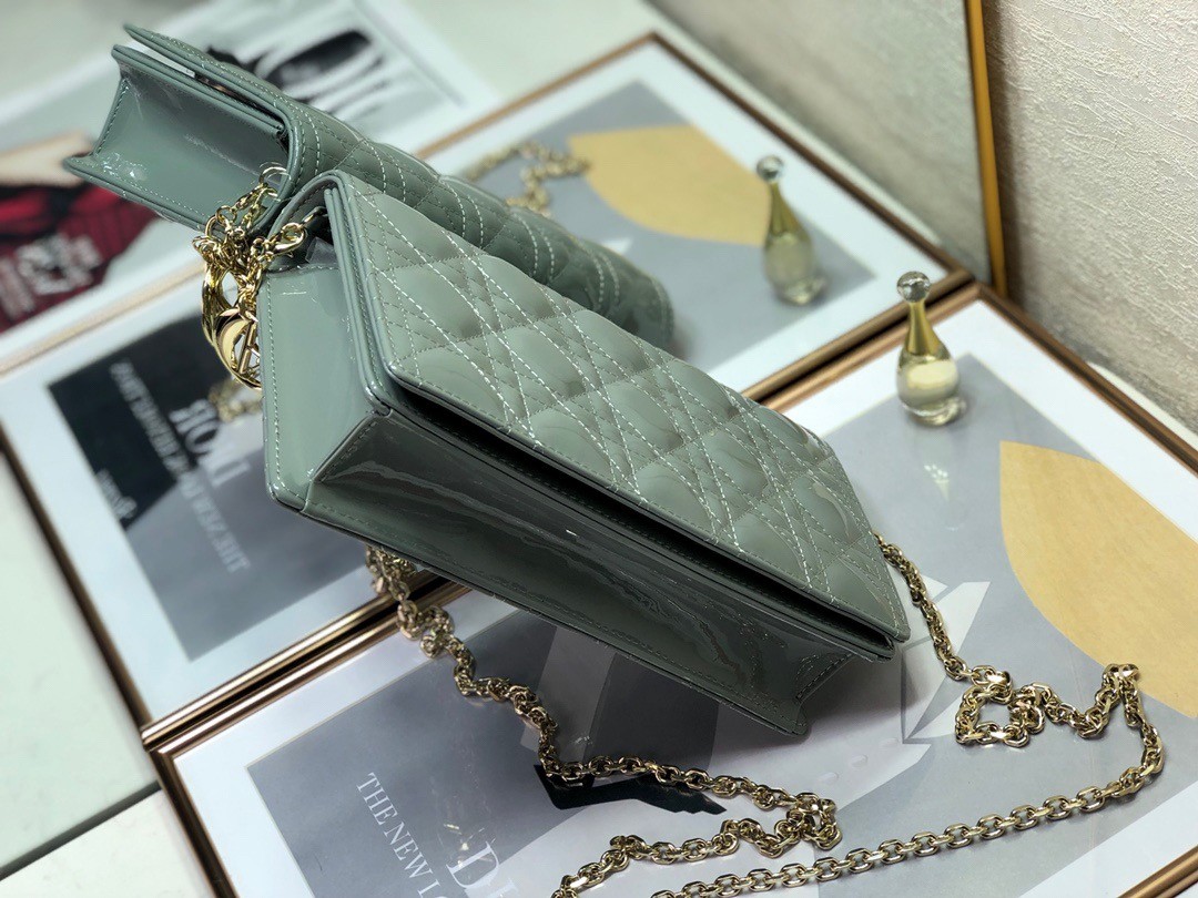 The Lady Dior pouch, crafted in glossy patent calfskin, is distinguished by Cannage topstitching and a detachable ‘D.I.O.R.’ charm. The unique accessory may be worn with or without its chain strap and features two removable elements, a card holder and a zipped pouch. Each may be carried individually. The pouch will instantly stand out and pairs well with other pieces from the same line.