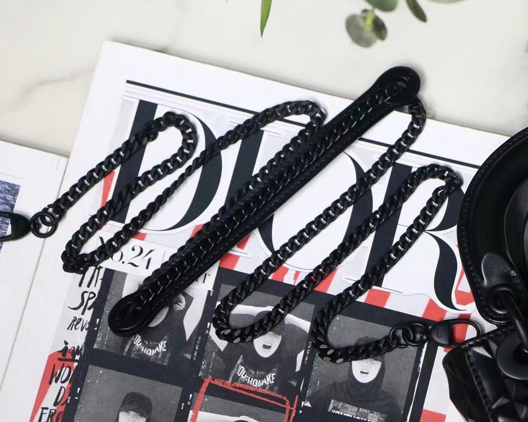 – Detachable chain link shoulder strap with leather pad
