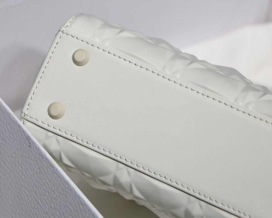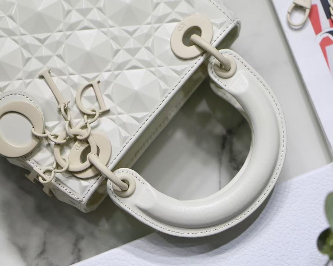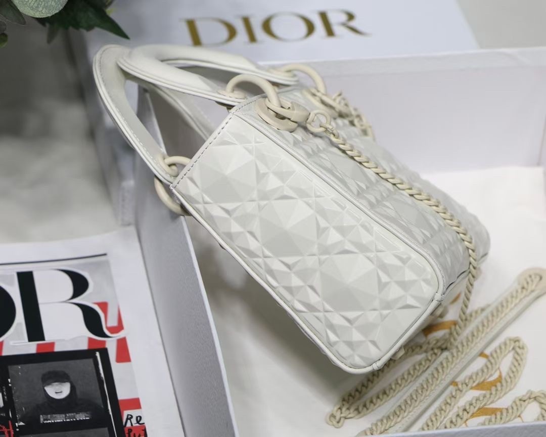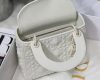The Lady Dior bag epitomizes Dior’s vision of elegance and beauty. Sleek and refined, the creation is timeless. Crafted in cannage calfskin, the bag showcases a graphic interpretation of the House’s iconic motif. The tonal metal ‘D.I.O.R.’ charms offer an elegant allure. Featuring a removable chain shoulder strap, the miniature Lady Dior bag can be carried by hand or worn crossbody.
