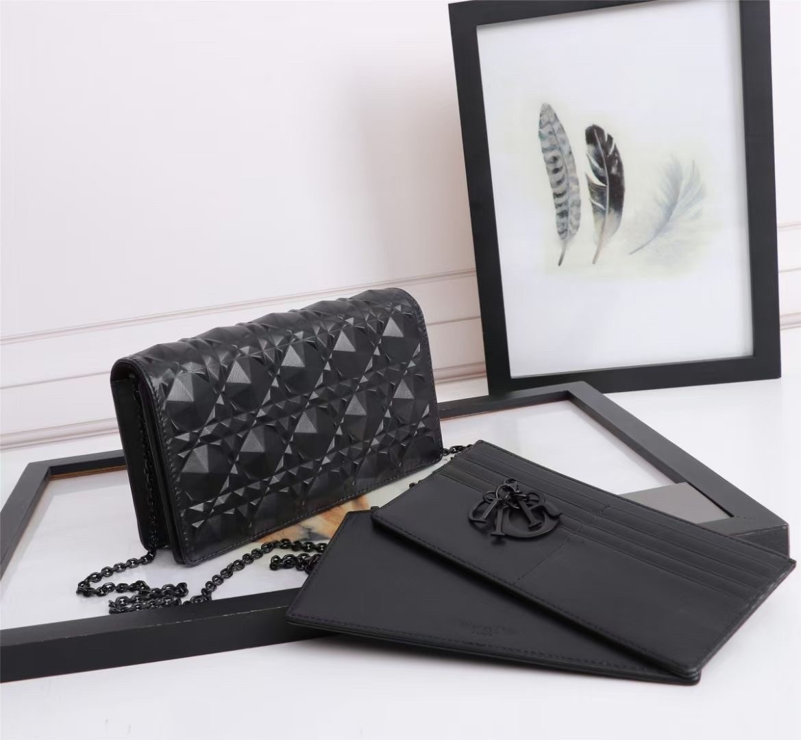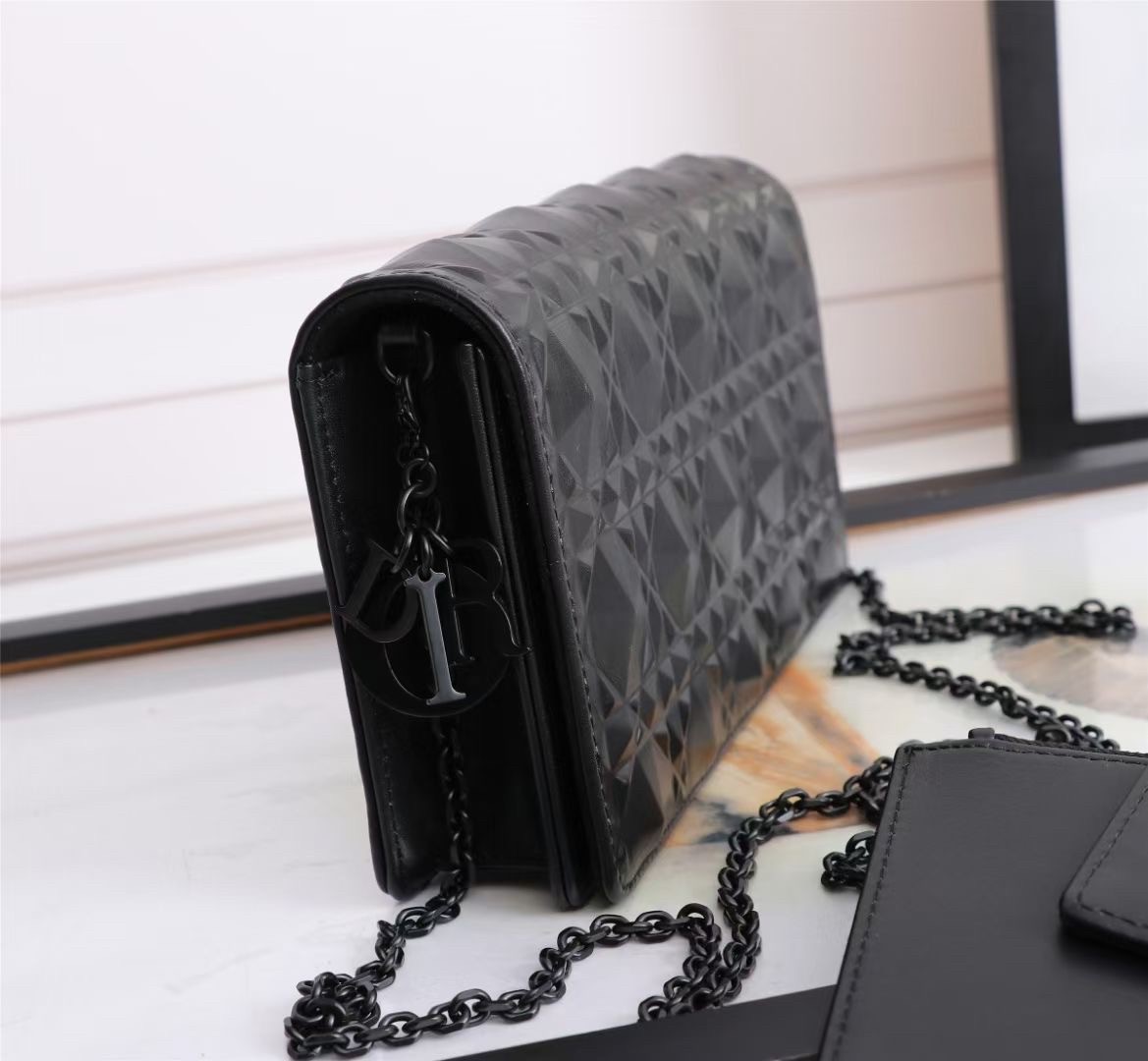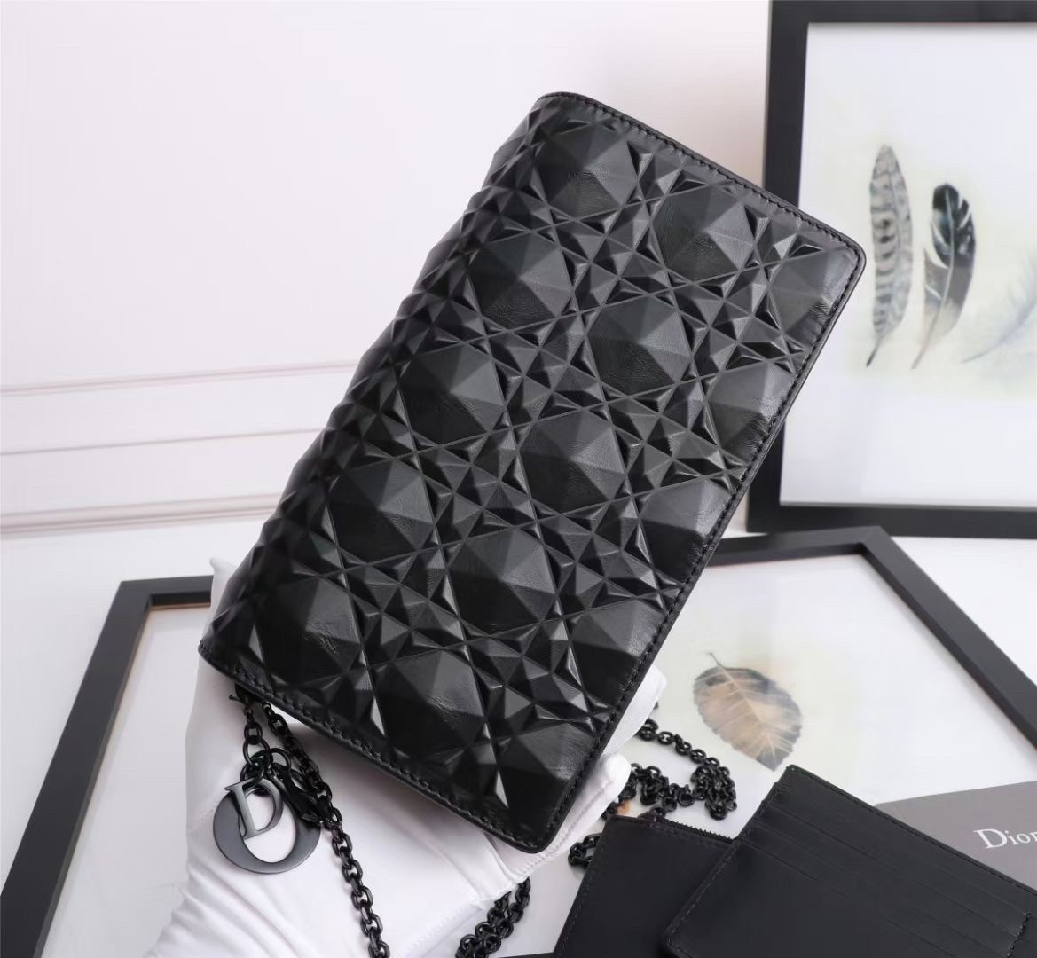 The Lady Dior pouch, crafted in denim calfskin, is distinguished by a graphic interpretation of Cannage topstitching and a ‘D.I.O.R.’ charm in tonal matte metal. The unique accessory may be worn with or without its chain strap and features two removable elements, a card holder and a zipped pouch. Each may be carried individually. Boasting the House’s iconic motif, the pouch will instantly stand out and pairs effortlessly with other pieces from the same line.