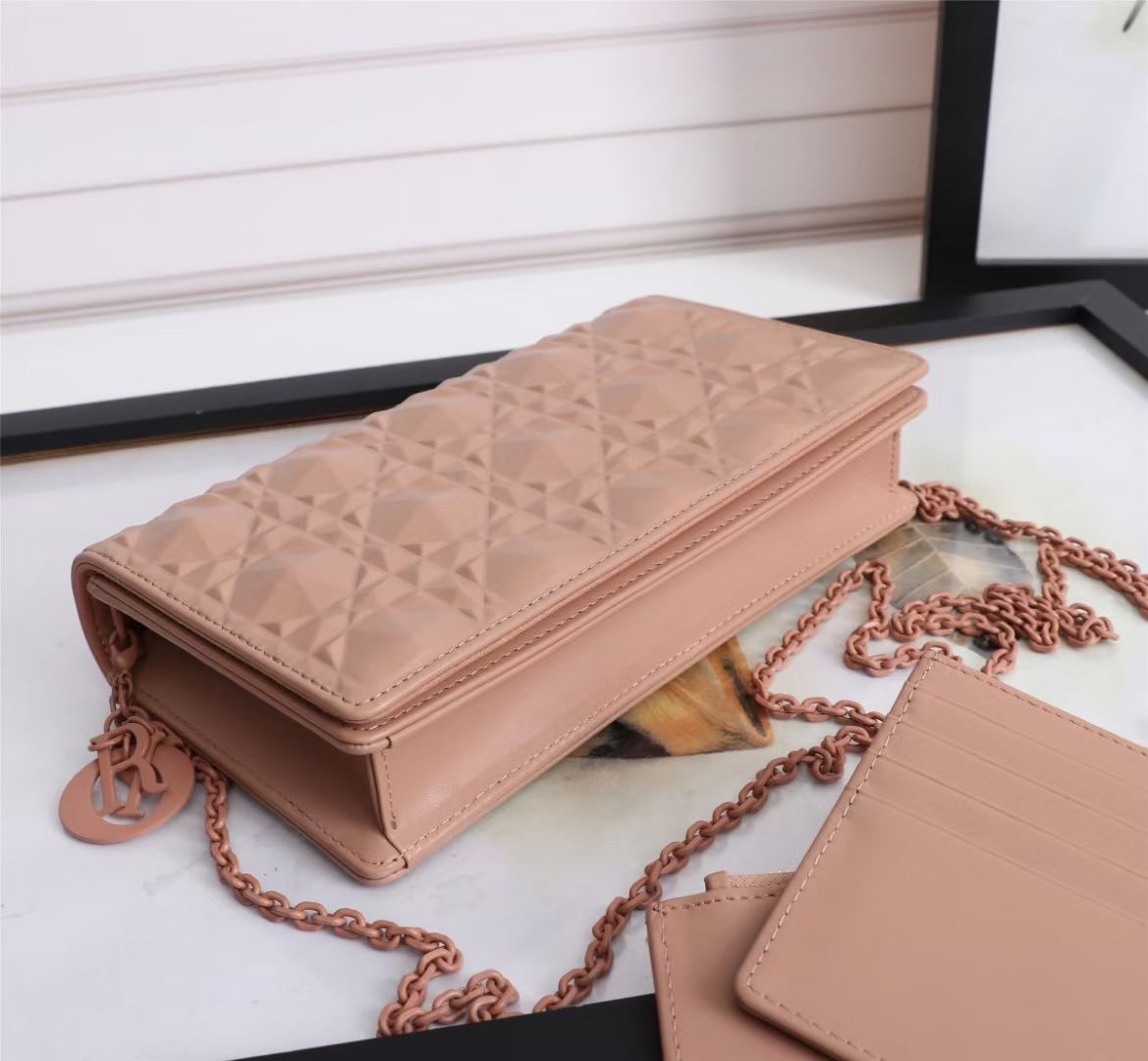 The Lady Dior pouch, crafted in denim calfskin, is distinguished by a graphic interpretation of Cannage topstitching and a ‘D.I.O.R.’ charm in tonal matte metal. The unique accessory may be worn with or without its chain strap and features two removable elements, a card holder and a zipped pouch. Each may be carried individually. Boasting the House’s iconic motif, the pouch will instantly stand out and pairs effortlessly with other pieces from the same line.