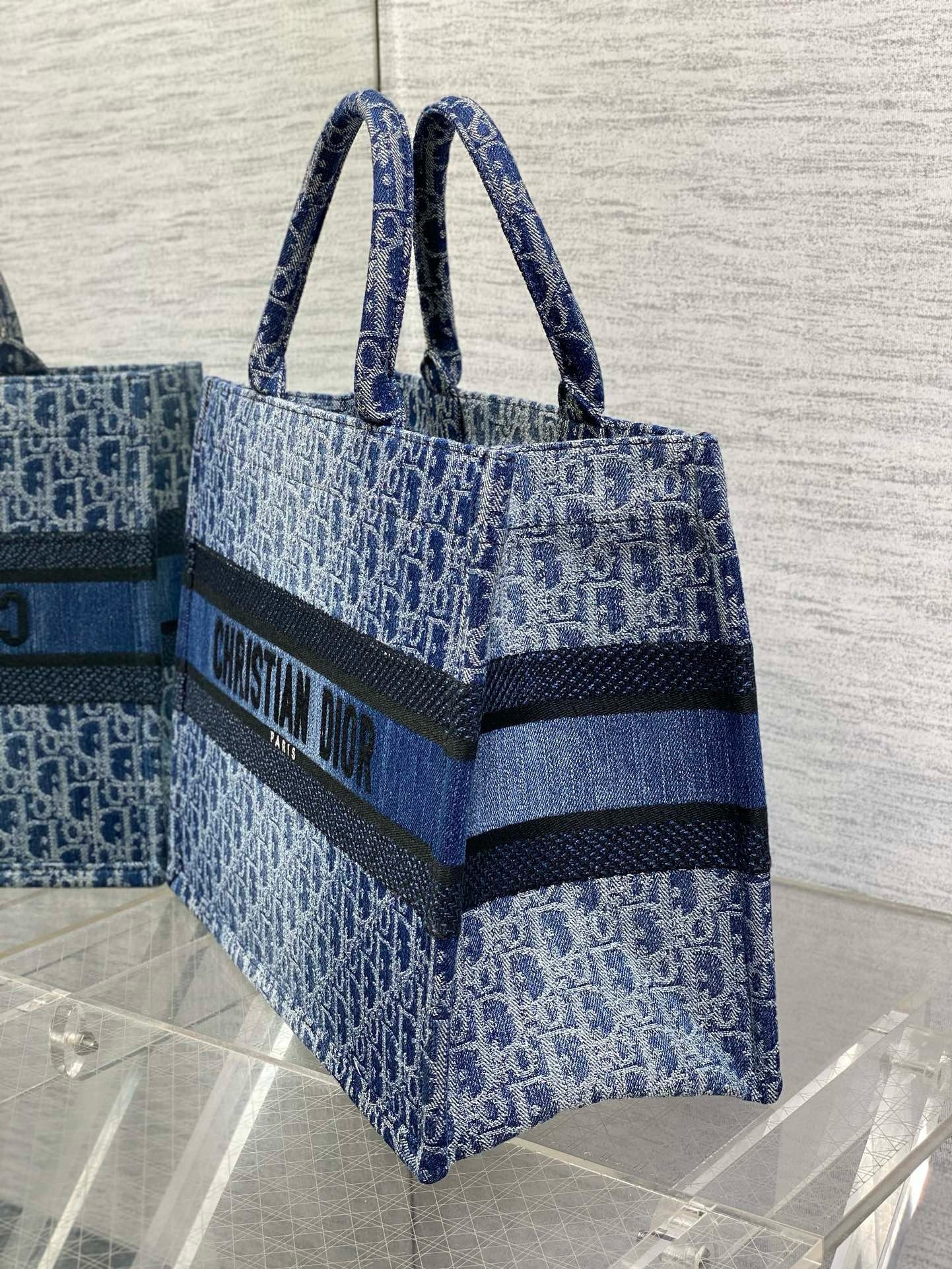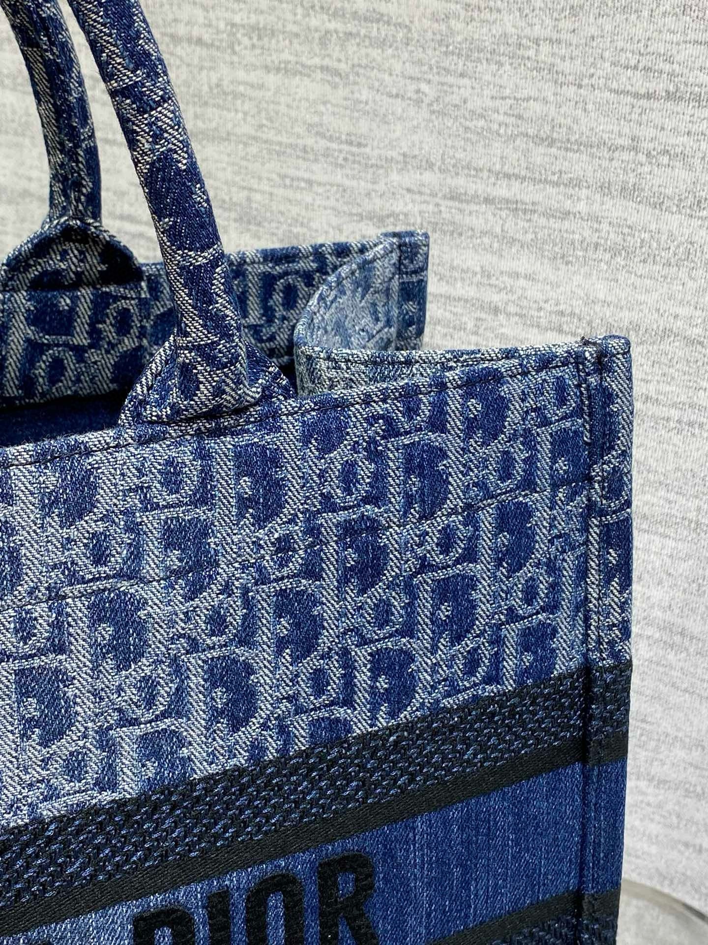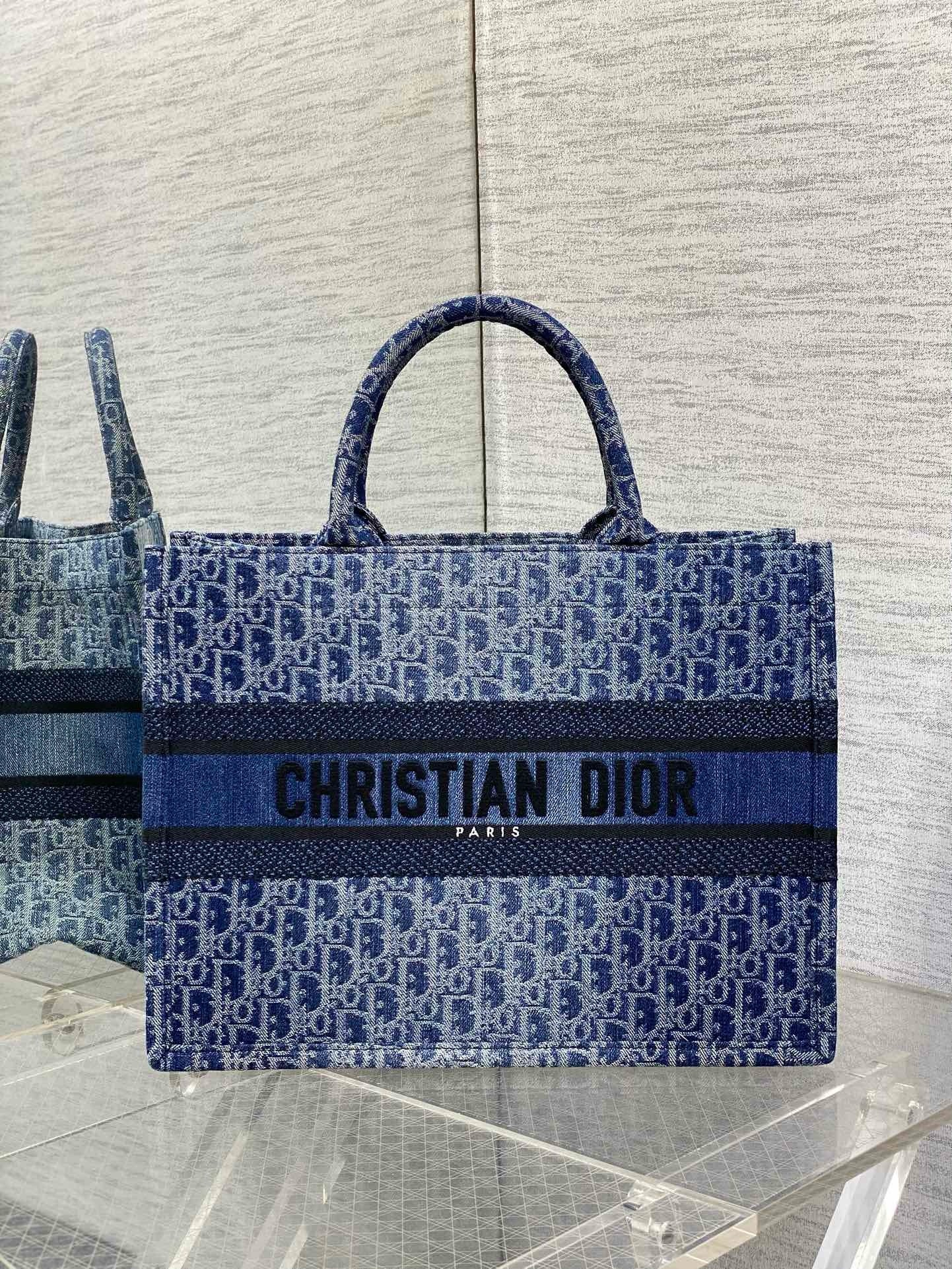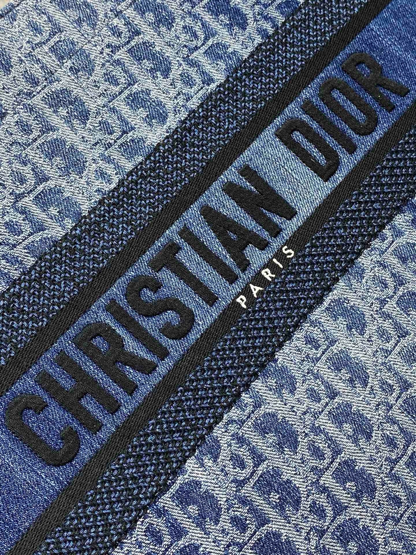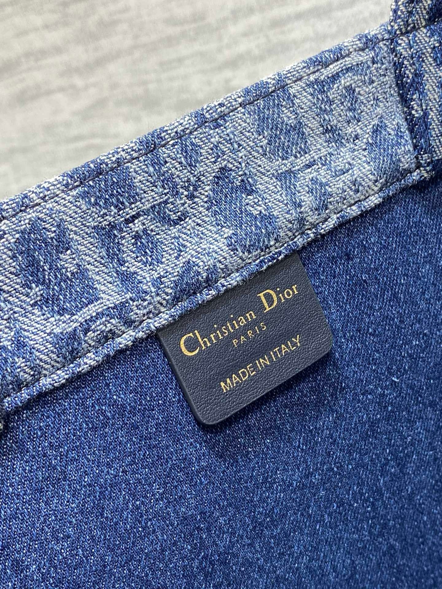 Introduced by Maria Grazia Chiuri, Creative Director of Christian Dior, the Dior Book Tote has become a staple of the Dior aesthetic. Designed to hold all the daily essentials, it is constructed in blue Denim Dior Oblique jacquard, offering a new take on the iconic House motif with the modern appeal of an irregular stonewashed effect. Adorned with a contrasting Christian Dior Paris signature on the front, the large tote exemplifies the House’s savoir-faire and may be carried by hand.