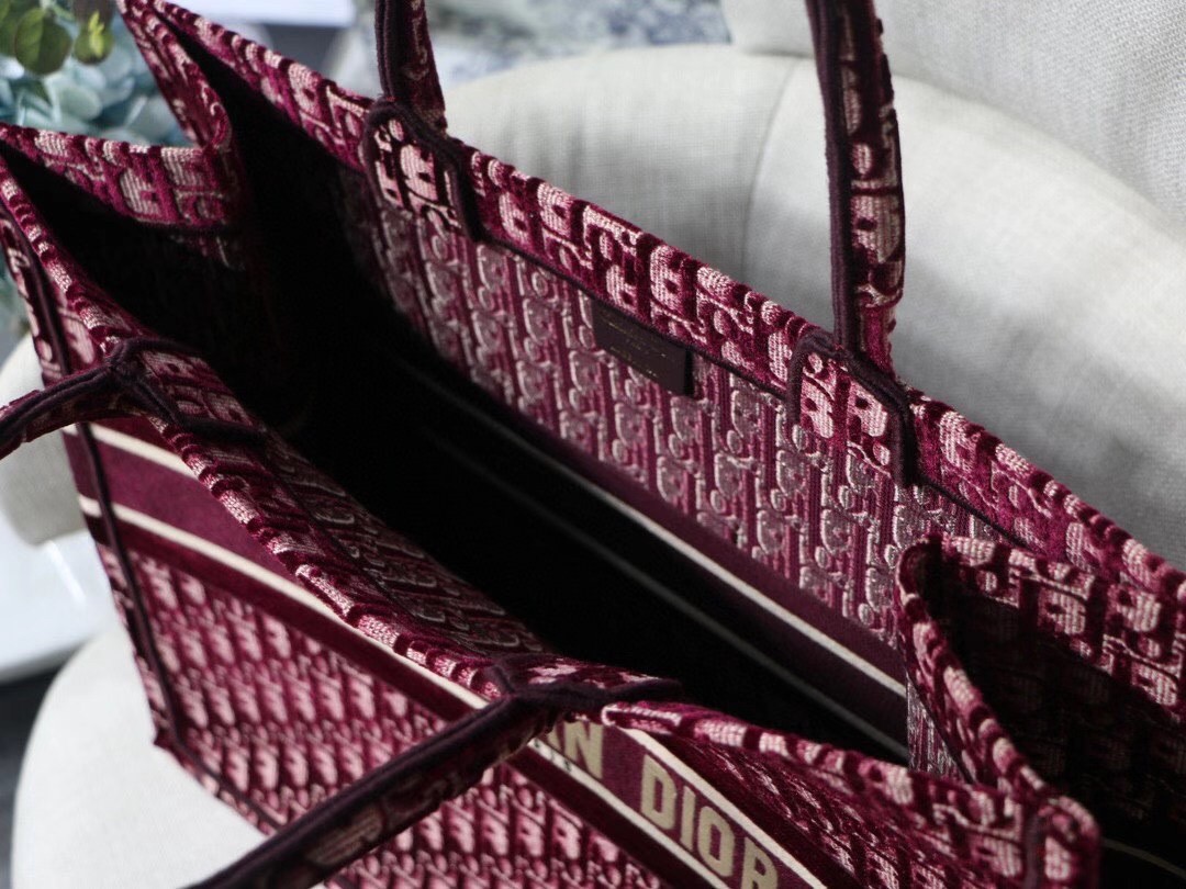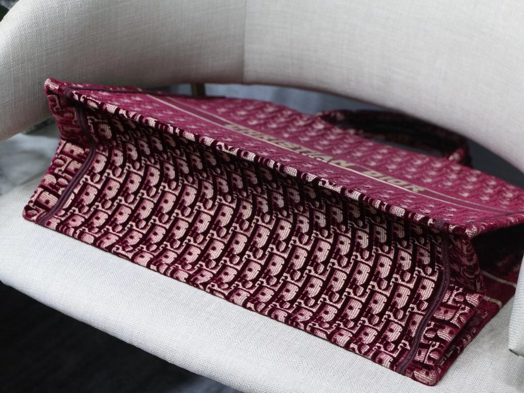 The Dior Book Tote, an original style introduced by Dior’s Creative Director Maria Grazia Chiuri, has become a staple of the Dior aesthetic. Ideally designed to carry all your daily essentials, the large shape is crafted in velvet that is fully embroidered with the Dior Oblique motif, lending texture and dimension to the bold color, and boasts a ‘Christian Dior’ signature on the front. This carryall is a perfect example of the Dior savoir-faire.