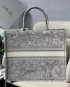 Introduced by Maria Grazia Chiuri, Creative Director of Christian Dior, the Dior Book Tote has become a staple of the Dior aesthetic. Designed to hold all daily essentials, the style is fully embroidered with a gray Toile de Jouy Reverse motif, a variation of the House’s hallmark pattern with a play on reversed colors. Adorned with the ‘CHRISTIAN DIOR’ signature on the front, the tote exemplifies the House’s signature savoir-faire and may be carried by hand or worn over the shoulder.