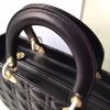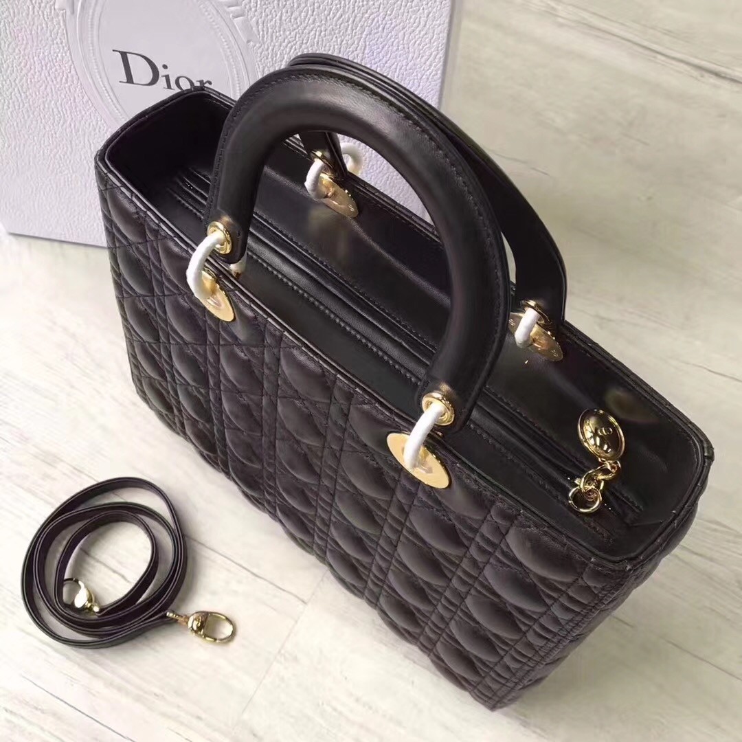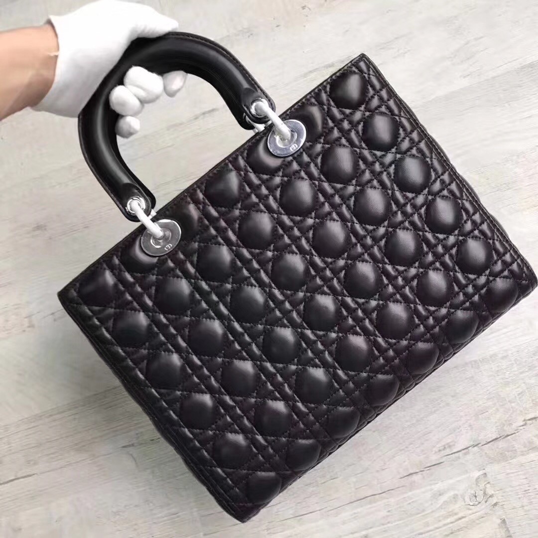 Looking for a chic and elegant bag with a vintage flair? This Christian Dior Lady Dior Cannage Lambskin Leather Large Tote bag is the one for you! This structured bag is made of quilted leather with cannage pattern embroidery. It features dangling DIOR letter charms which adds some bling to this glamorous bag and also comes with a detachable shoulder strap. A perfect bag for day or night!