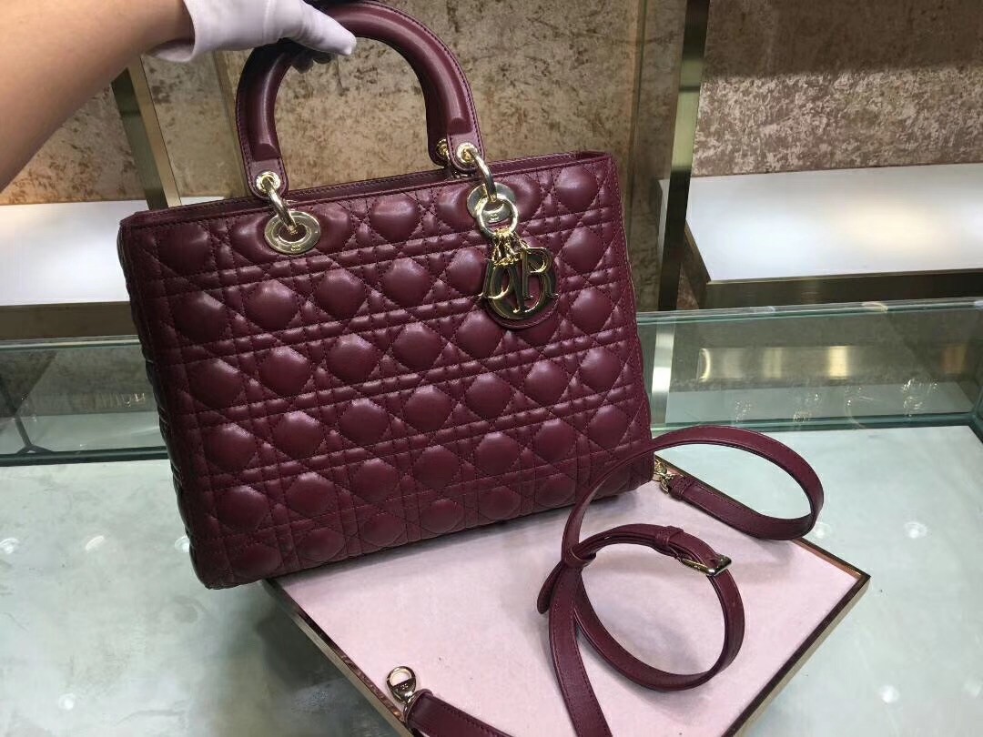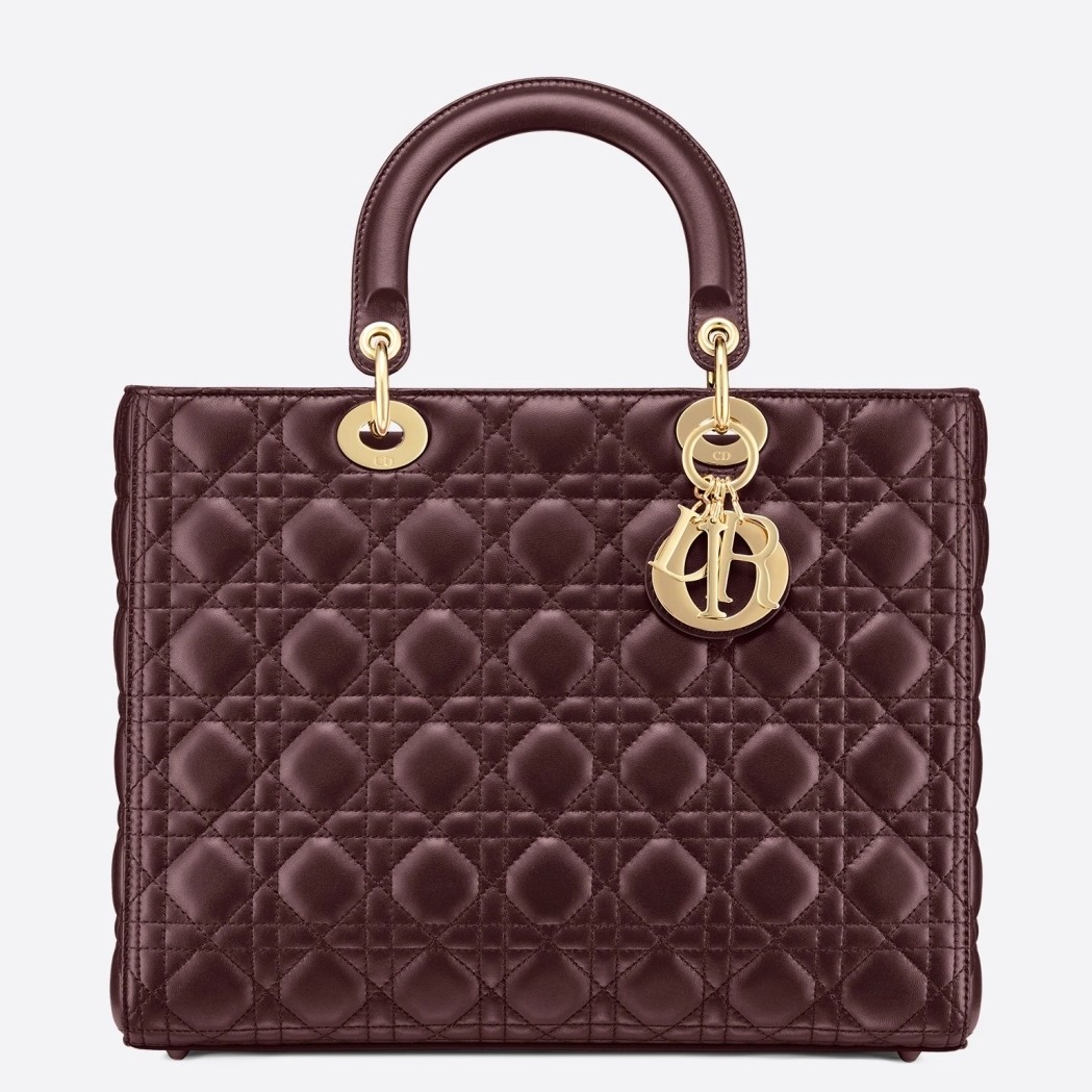 Looking for a chic and elegant bag with a vintage flair? This Christian Dior Lady Dior Cannage Lambskin Leather Large Tote bag is the one for you! This structured bag is made of quilted leather with cannage pattern embroidery. It features dangling DIOR letter charms which adds some bling to this glamorous bag and also comes with a detachable shoulder strap. A perfect bag for day or night!