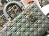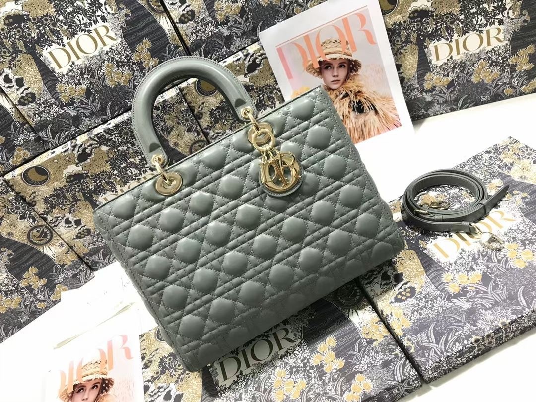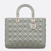 The Lady Dior handbag epitomizes the House’s vision of elegance and beauty. A sleek, refined bag, it is timeless yet modern. Crafted from lambskin and covered with Cannage stitching, it showcases an iconic and instantly recognizable quilted texture. The pale gold-finish metal ‘D.I.O.R.’ charms offer an elegant allure. Featuring a thin, removable leather shoulder strap, the large Lady Dior bag can be carried by hand, worn over the shoulder or crossbody.