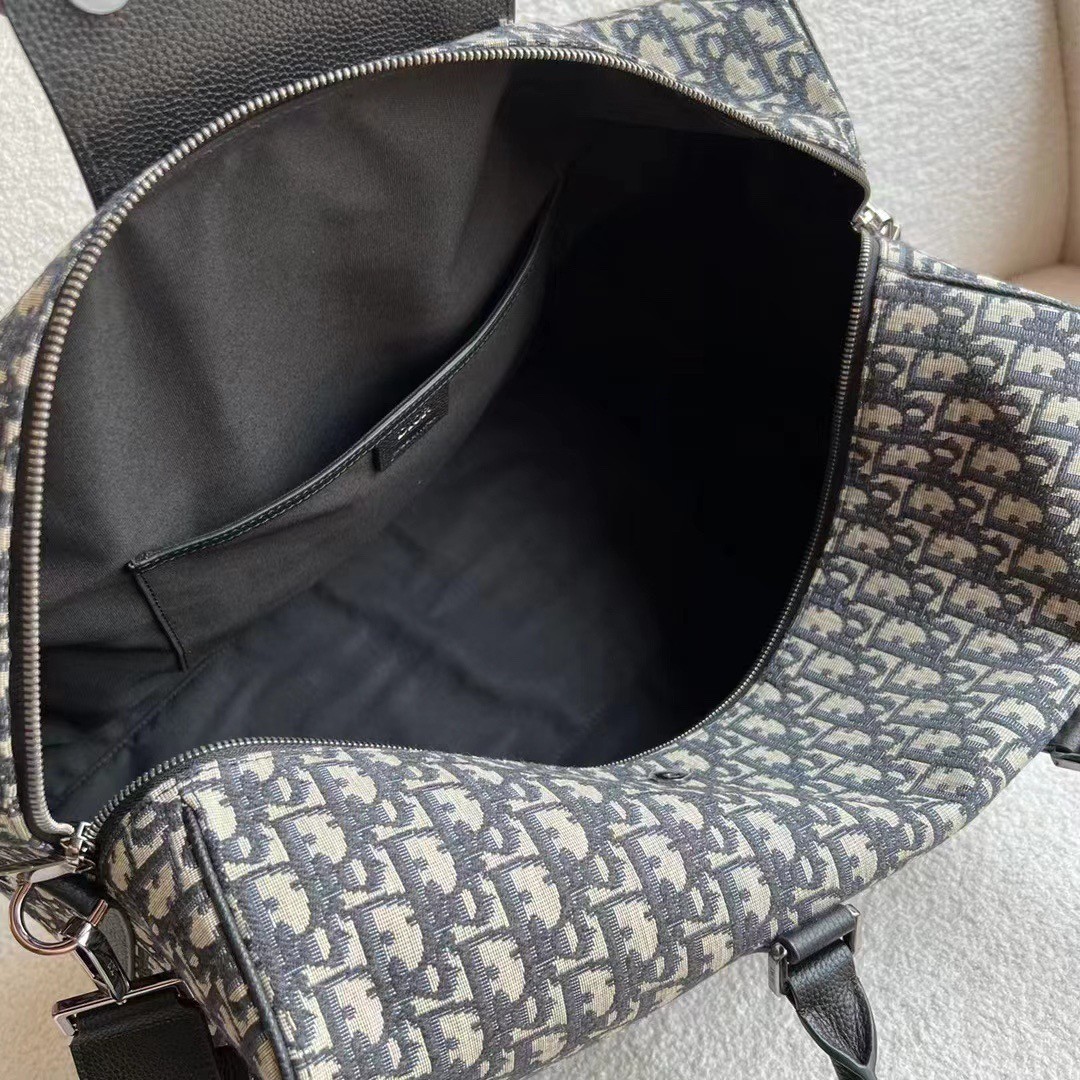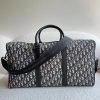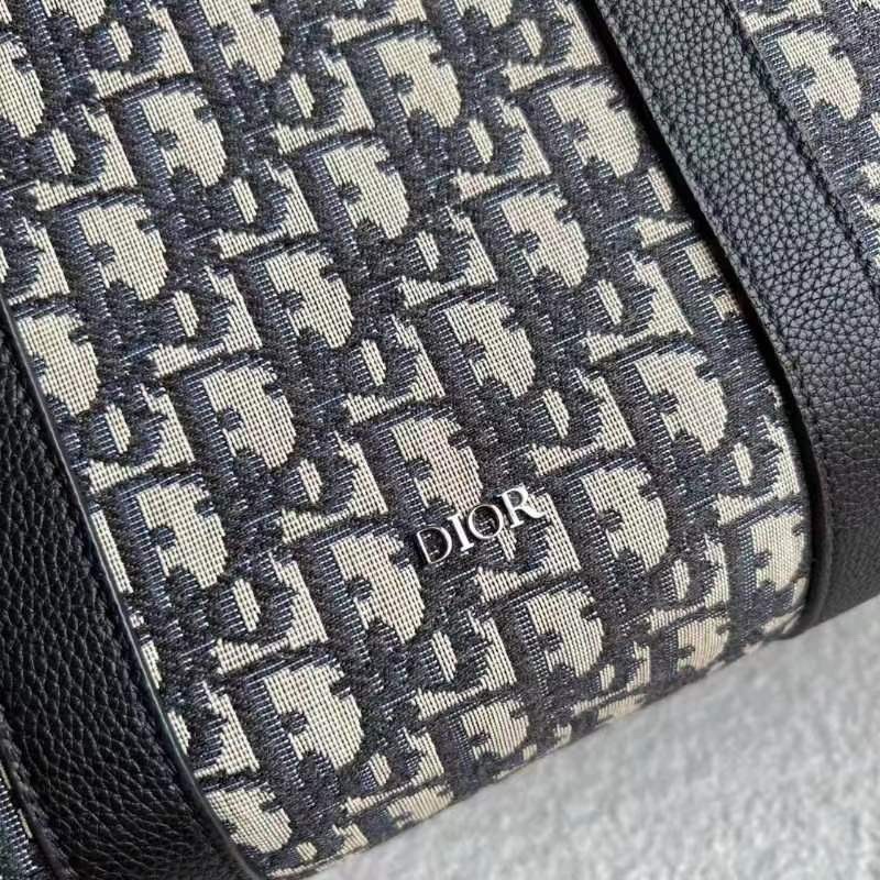 New this season, the Dior Lingot 50 Duffel bag is distinguished by a functional and elegant design. The beige and black Dior Oblique jacquard is enhanced by black grained calfskin details and the ‘DIOR’ signature on the front. A zipped compartment with a Saddle flap will hold all the daily essentials. The folding top handles and adjustable, removable shoulder strap with an aluminum buckle allows the bag to be carried by hand, worn over the shoulder or crossbody.