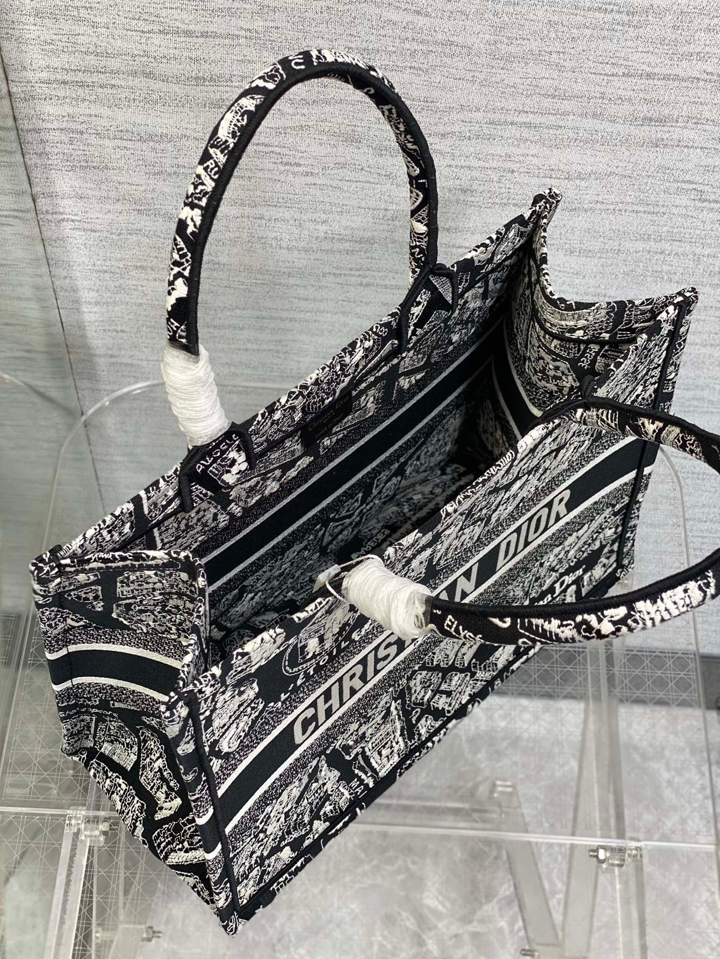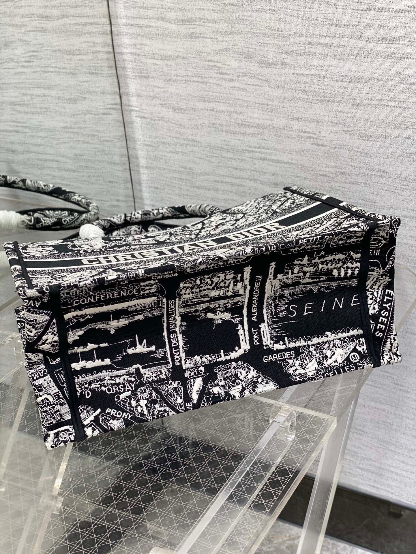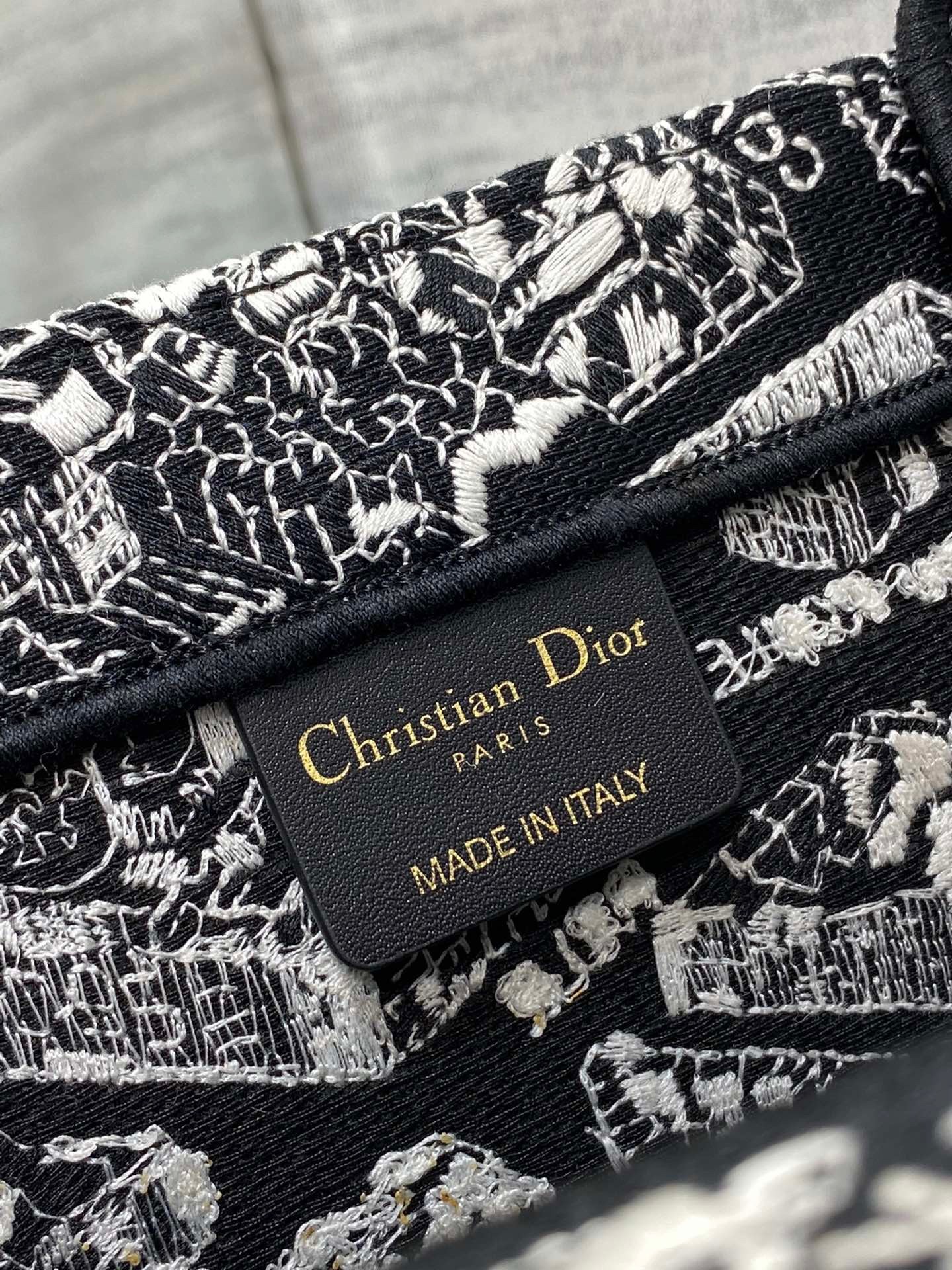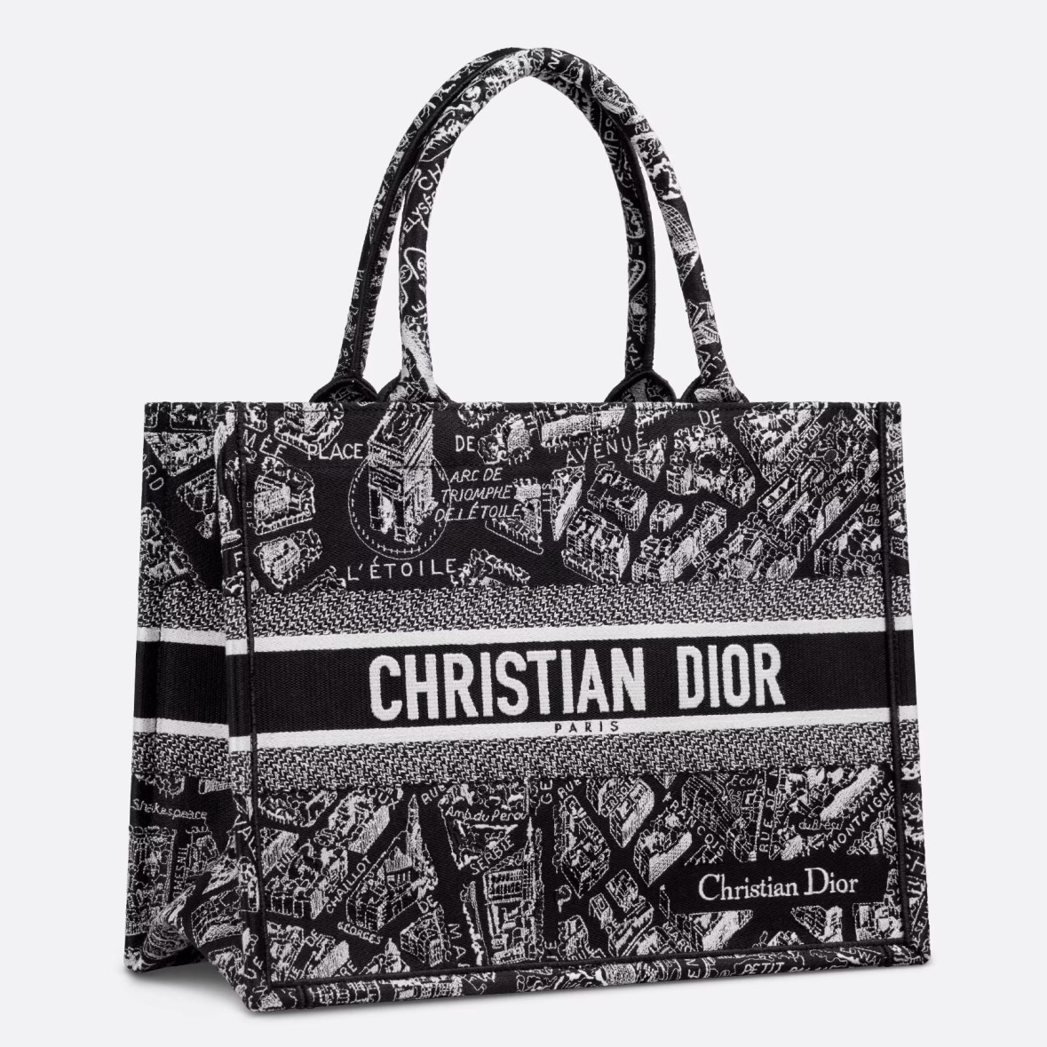 Dior Medium Book Tote Bag In Black Plan de Paris Embroidery