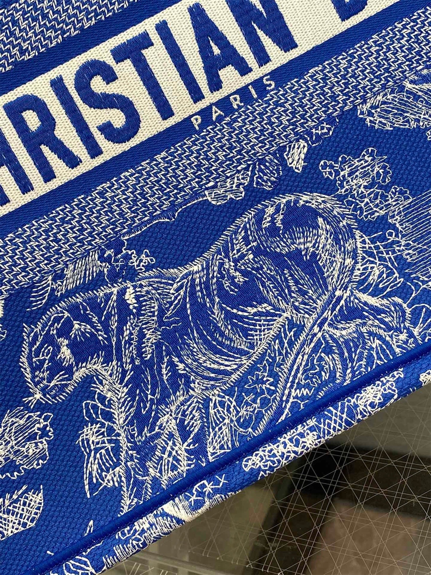 Part of the Dioriviera capsule collection, the Dior Book Tote is a House classic designed by Maria Grazia Chiuri, Creative Director of Christian Dior. Created to hold the daily essentials, the style is fully embroidered in Toile de Jouy Reverse motif, a new take on the iconic motif with a play on reversed colors. Enhanced by the ‘CHRISTIAN DIOR PARIS’ signature on the front, the medium tote exemplifies the House’s signature savoir-faire and may be carried by hand or worn over the shoulder.