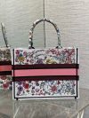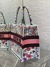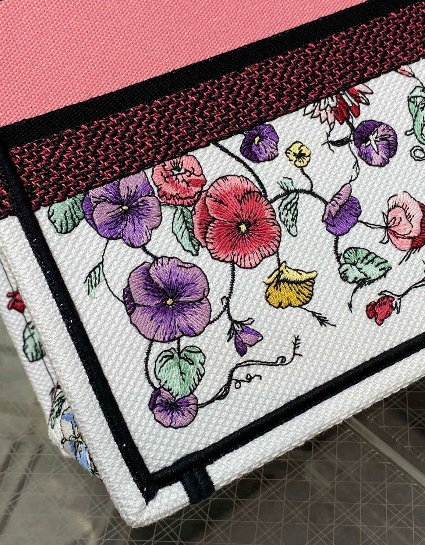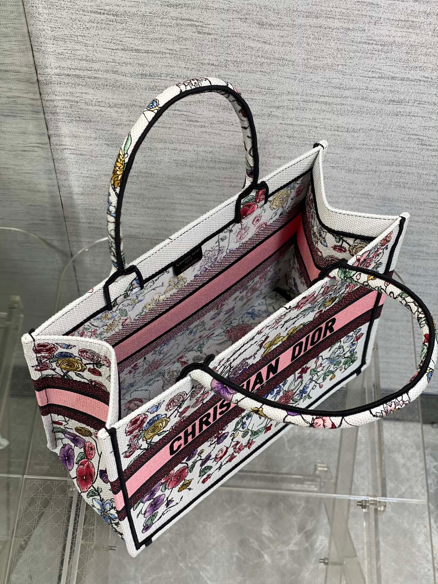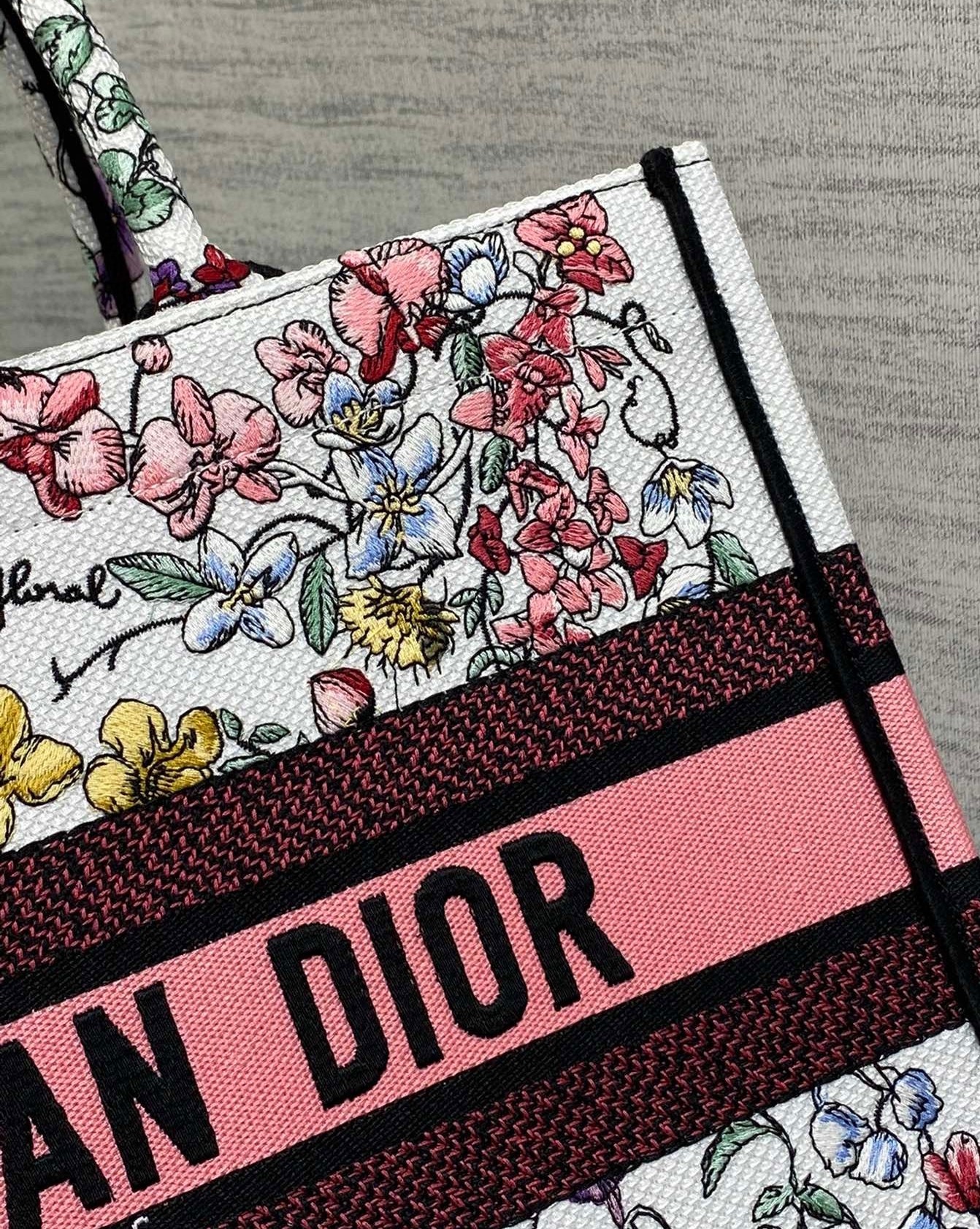 Introduced by Maria Grazia Chiuri, Dior’s Creative Director, the Dior Book Tote has become a staple of the Dior aesthetic. Designed to hold all the daily essentials, the style is fully embroidered with the white multicolor Florilegio motif showcasing a bucolic, elegant and colorful universe. The design is adorned with the Christian Dior Paris signature on the front and exemplifies the House’s signature savoir-faire. The medium tote may be carried by hand or worn over the shoulder.