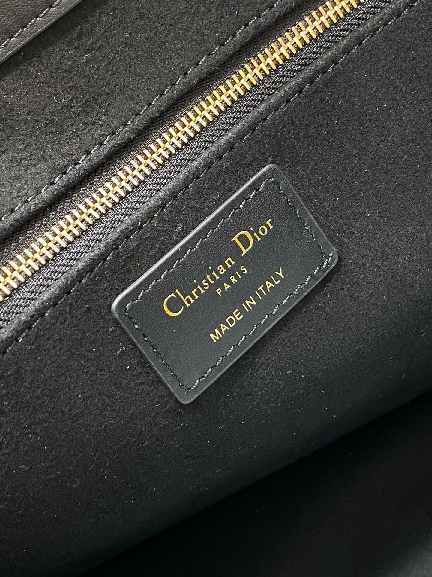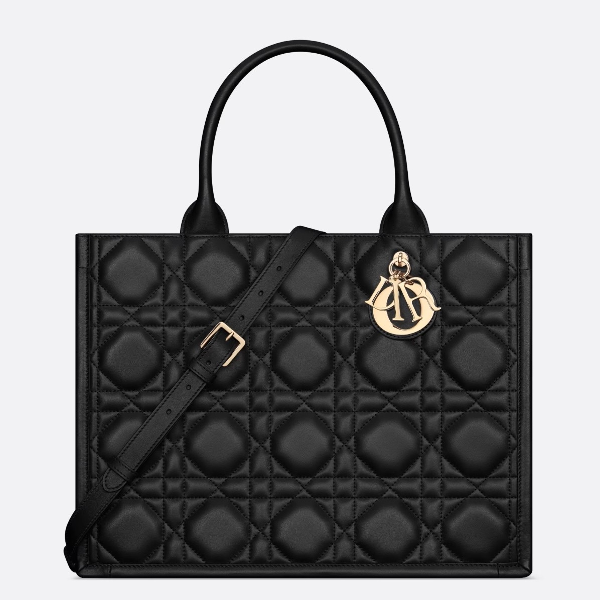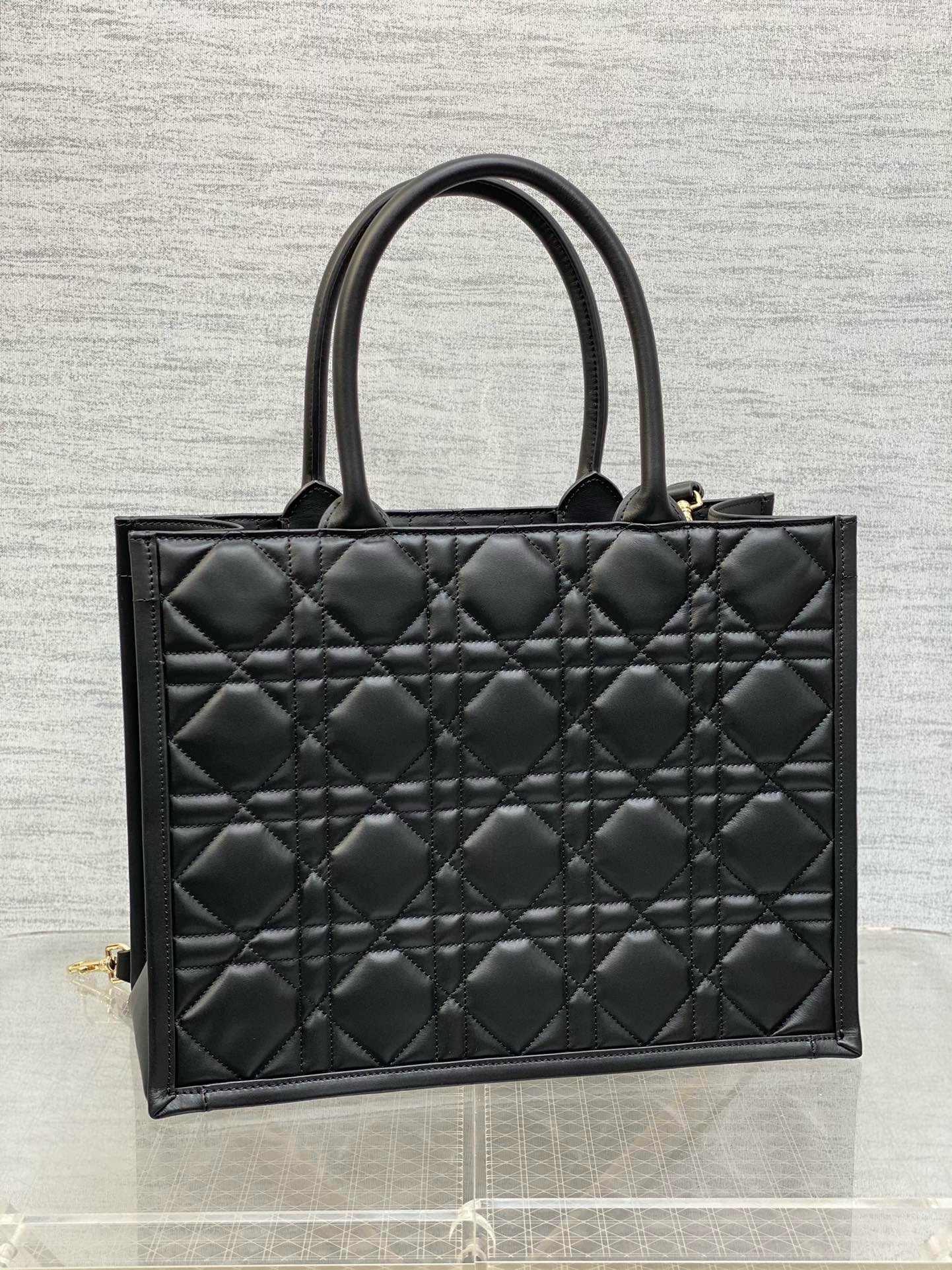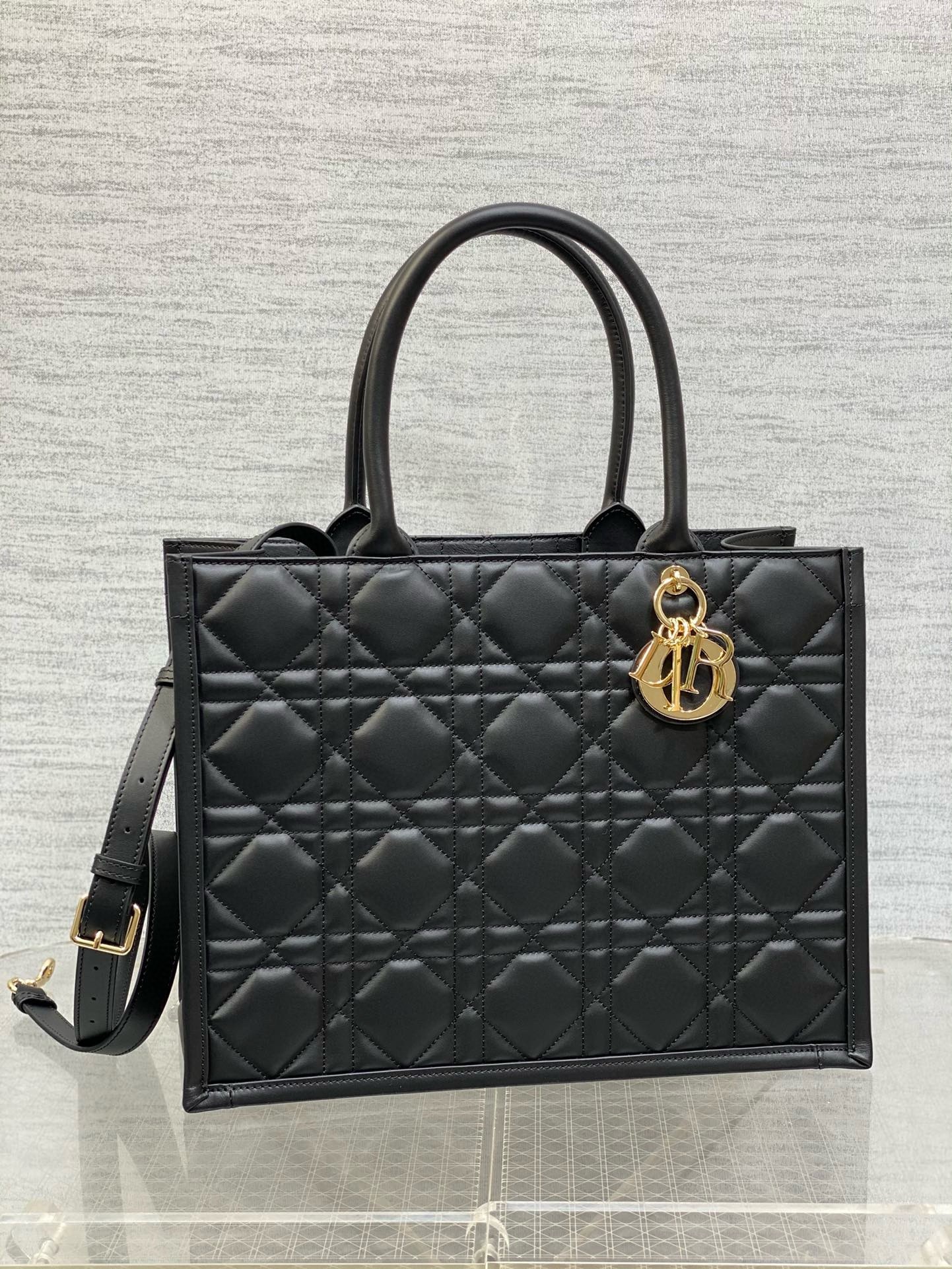 Dior Medium Book Tote Bag with Strap in Black Macrocannage Calfskin