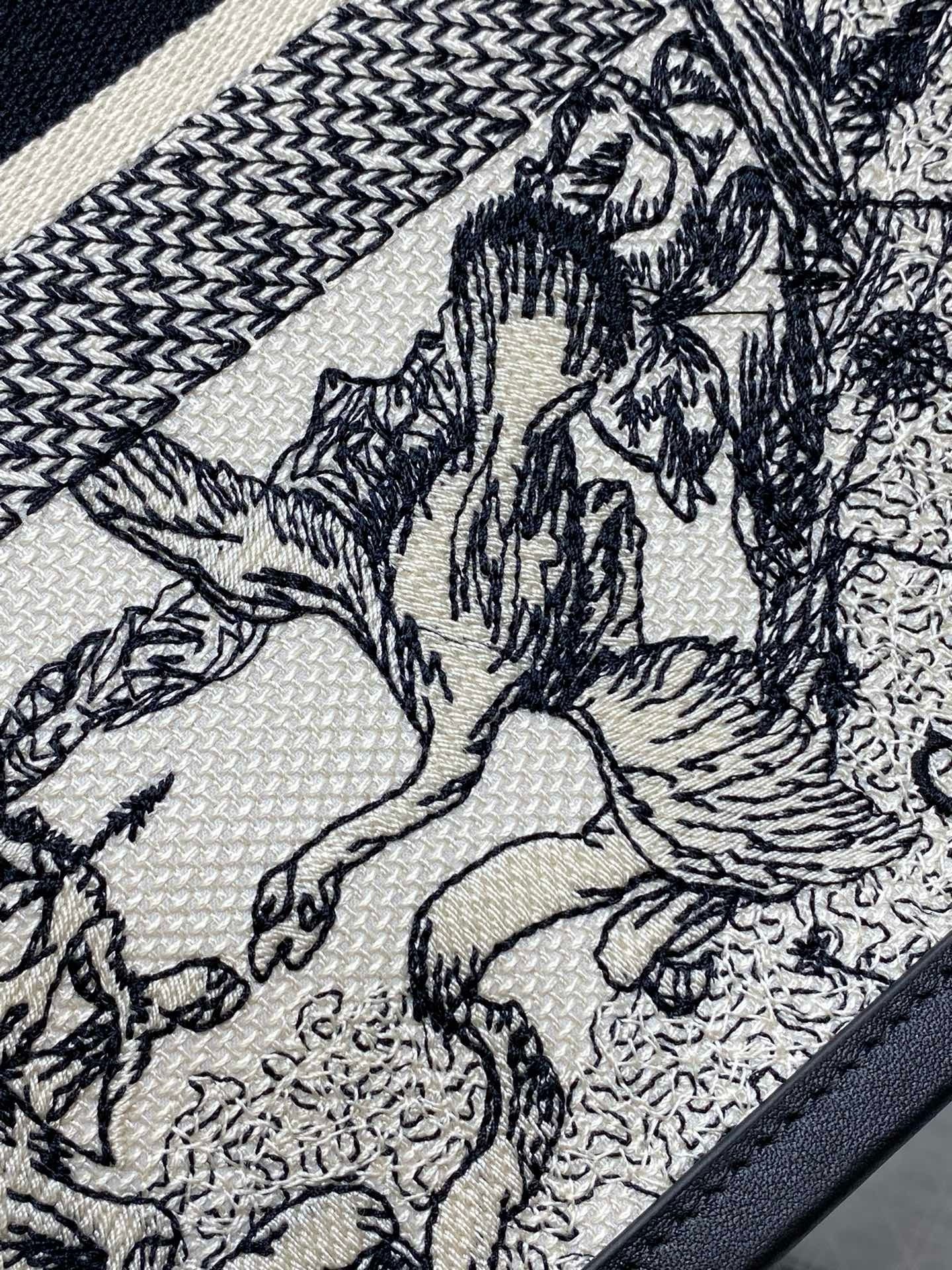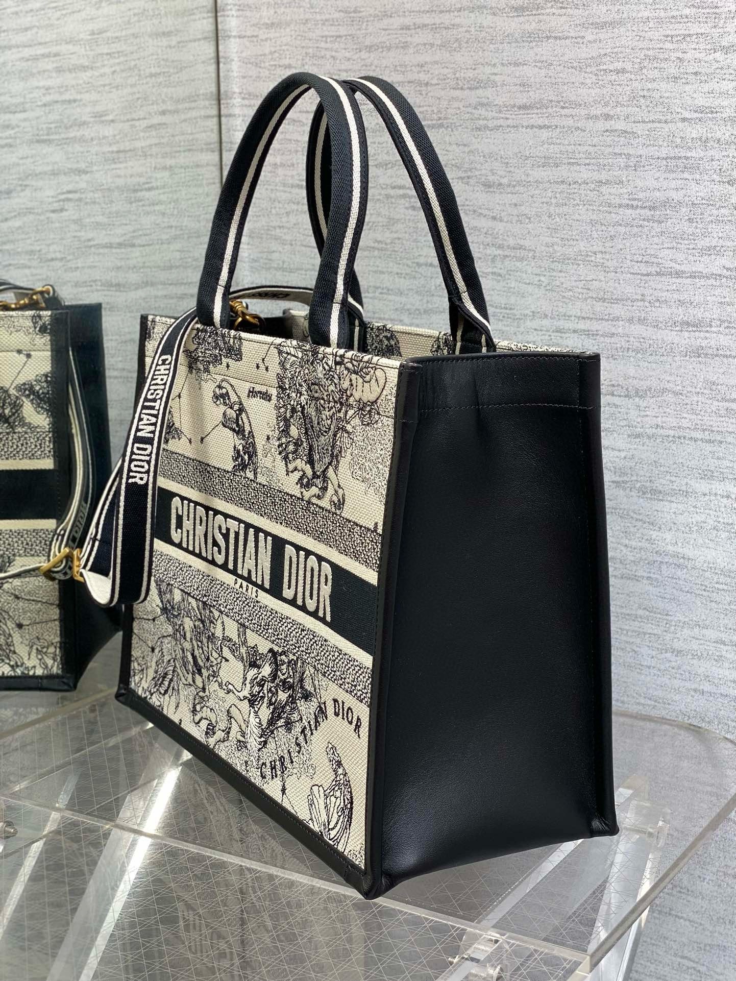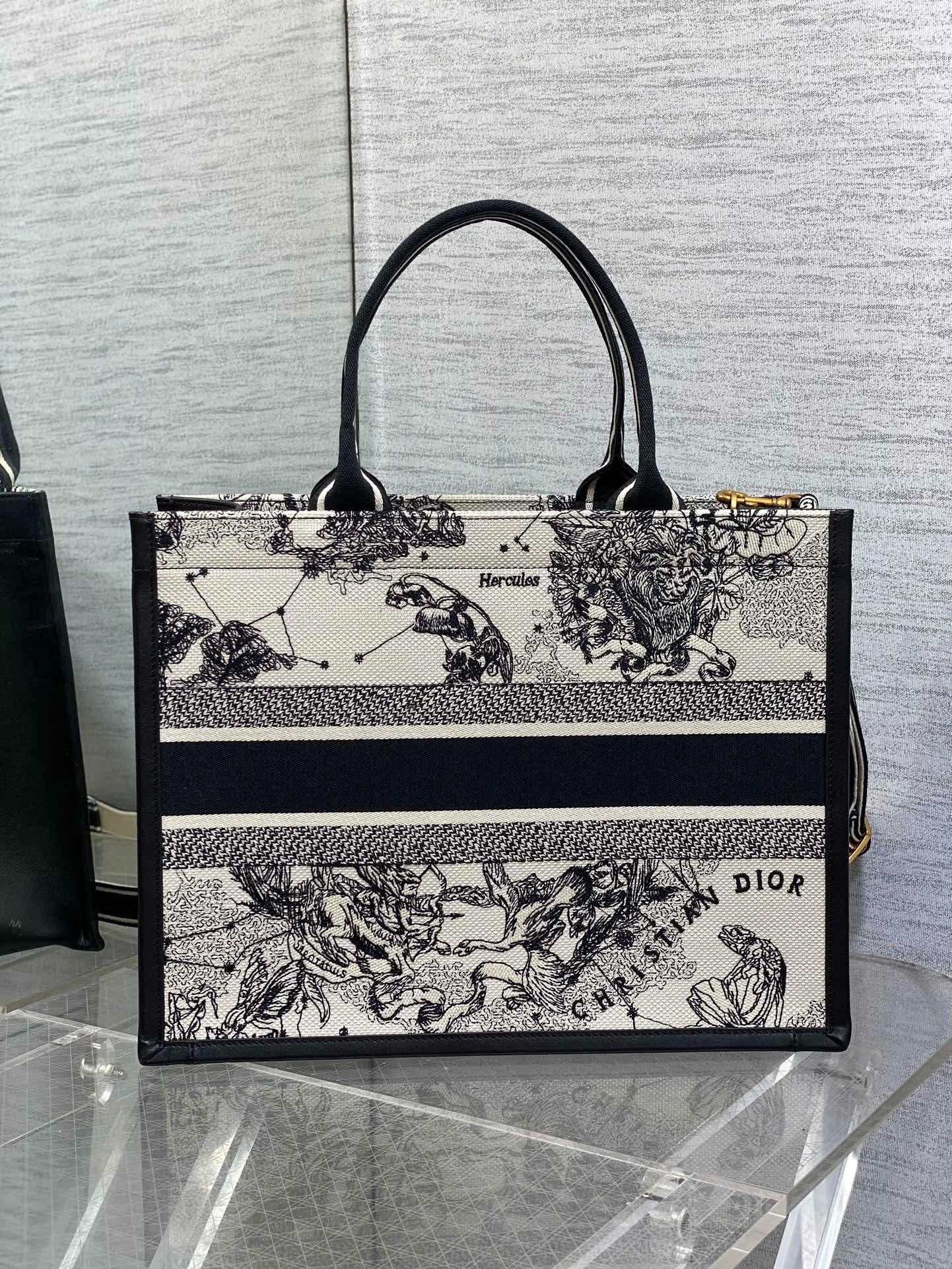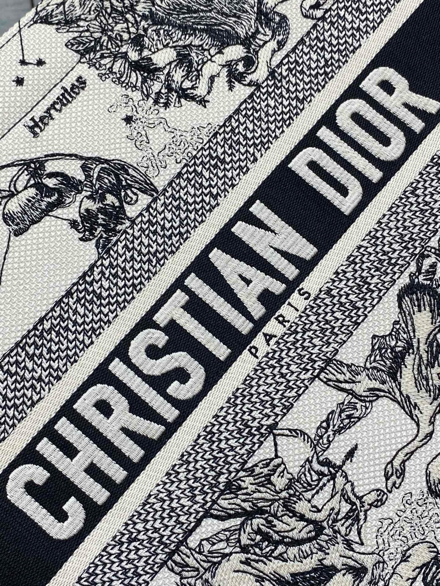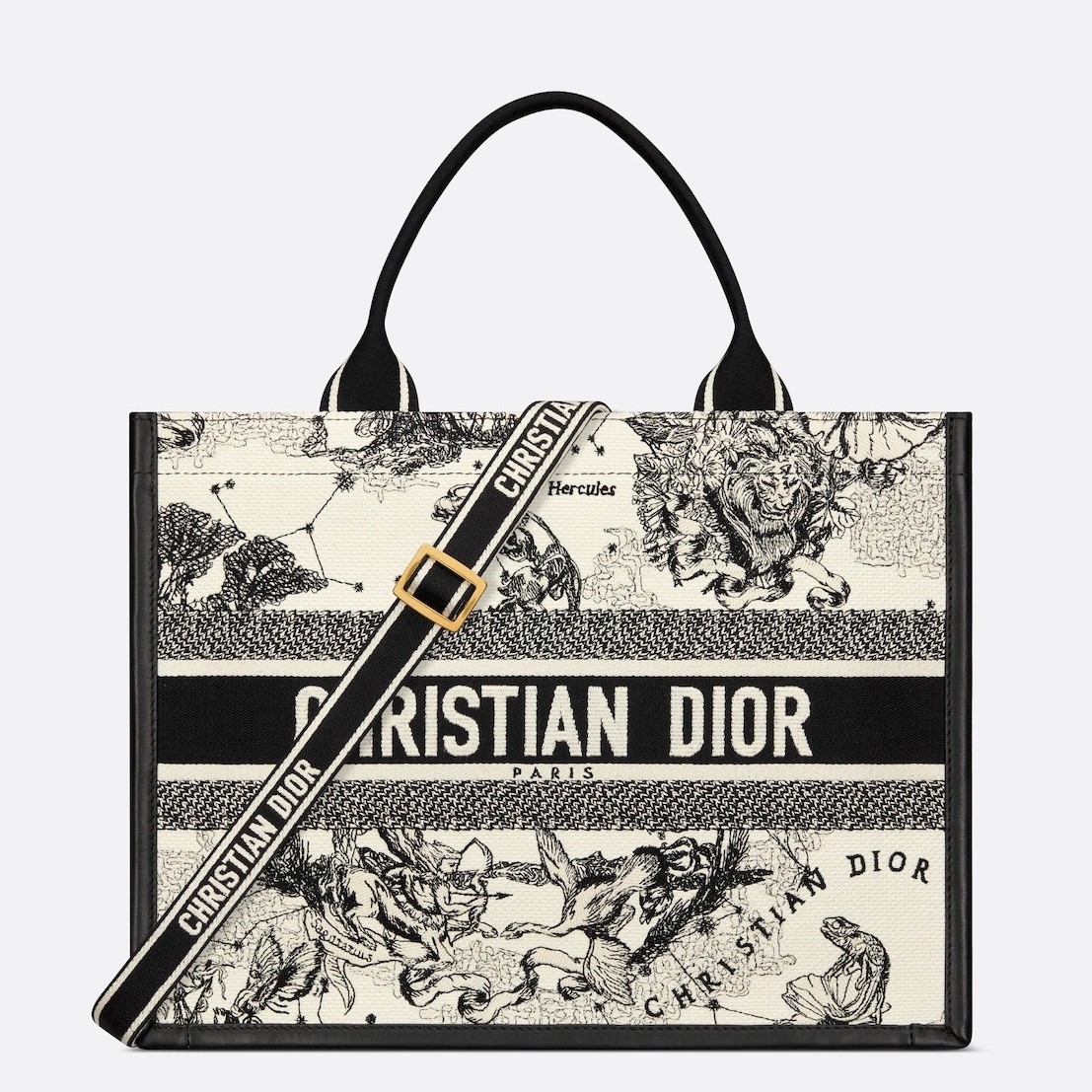 Maria Grazia Chiuri’s hallmark Dior Book Tote offers an original take on elegance with a motif inspired by Mr. Dior’s passion for astrology. The refined style showcases the latte multicolor Dior Zodiac embroidery and black calfskin. Designed to keep all the daily essentials organized, the interior is equipped with a zip pocket and slip pockets. Featuring an adjustable and removable shoulder strap, the practical medium tote exemplifies Dior’s savoir-faire and can be carried by hand or worn over the shoulder.