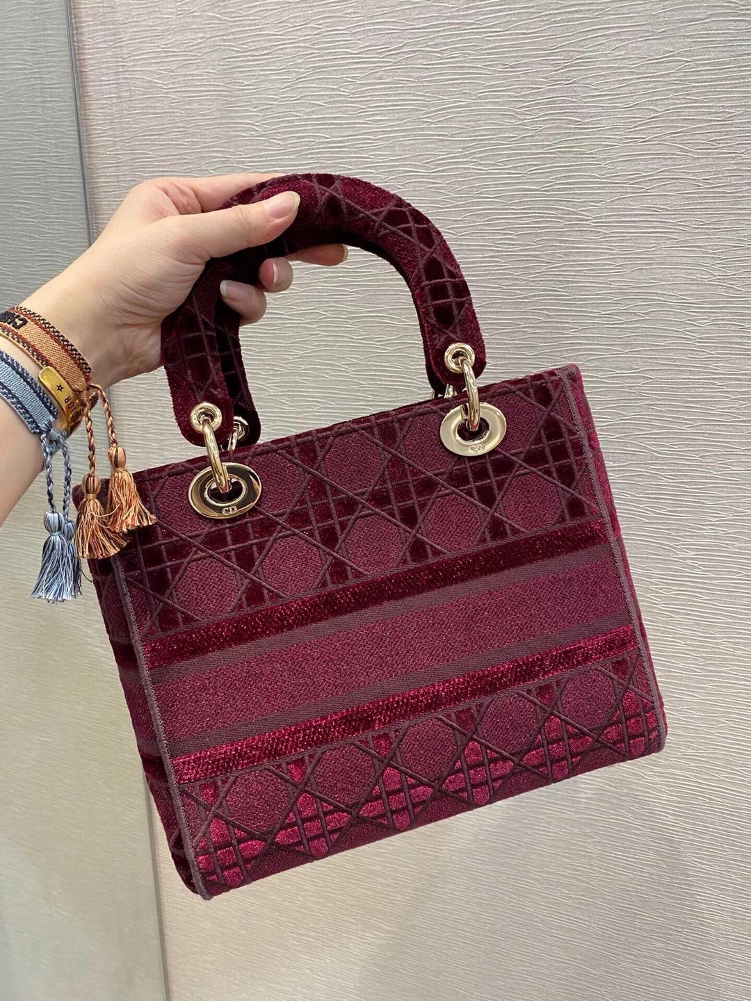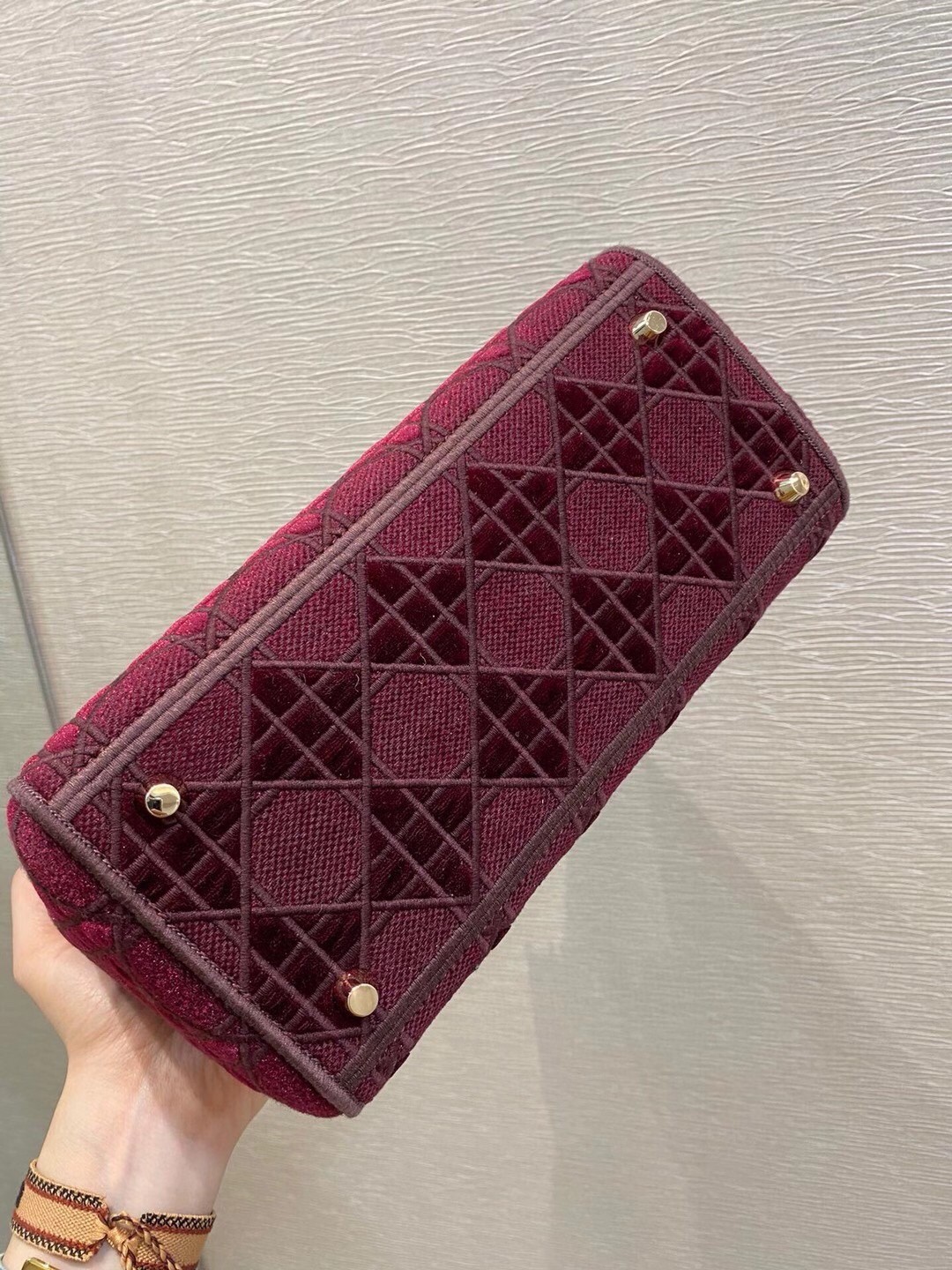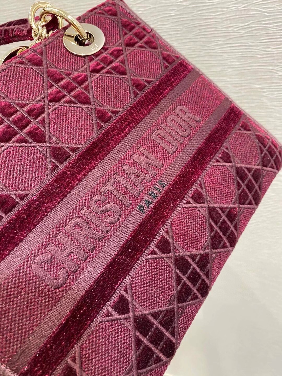 Dior Medium Lady D-Lite Bag In Bordeaux Embroidered Velvet